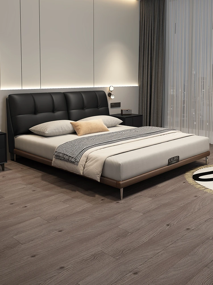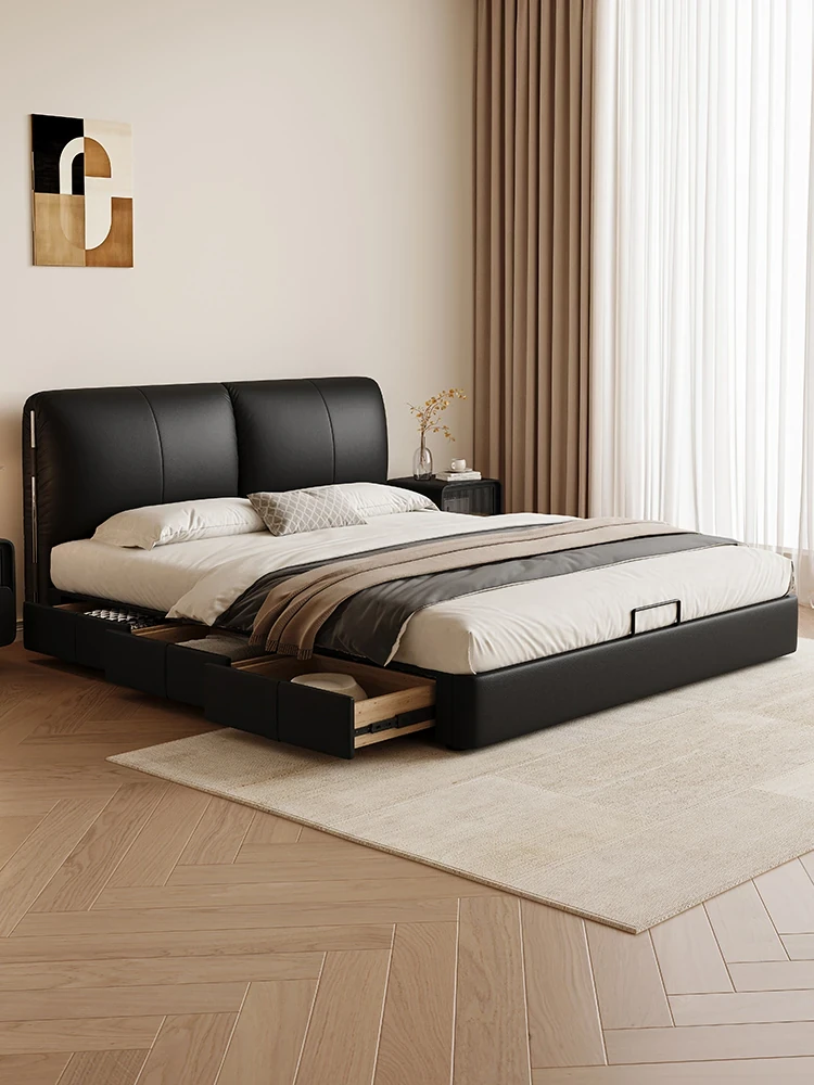 カデリ 大黒熊 ブラック イタリアンミニマリズム ソフトパック 本革 高さのある収納ダブルベッド 大きな主寝室にぴったりの高級感溢れるデザイン!快適な睡眠とスタイリッシュな空間を両立します。