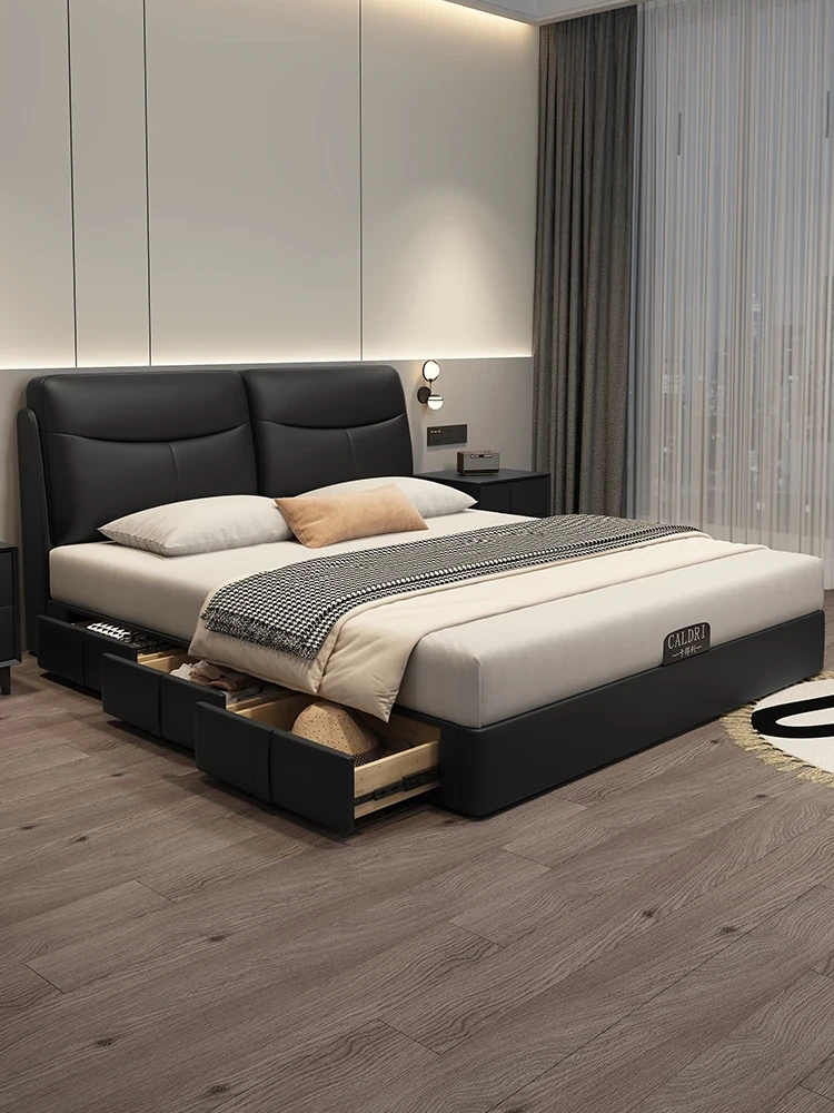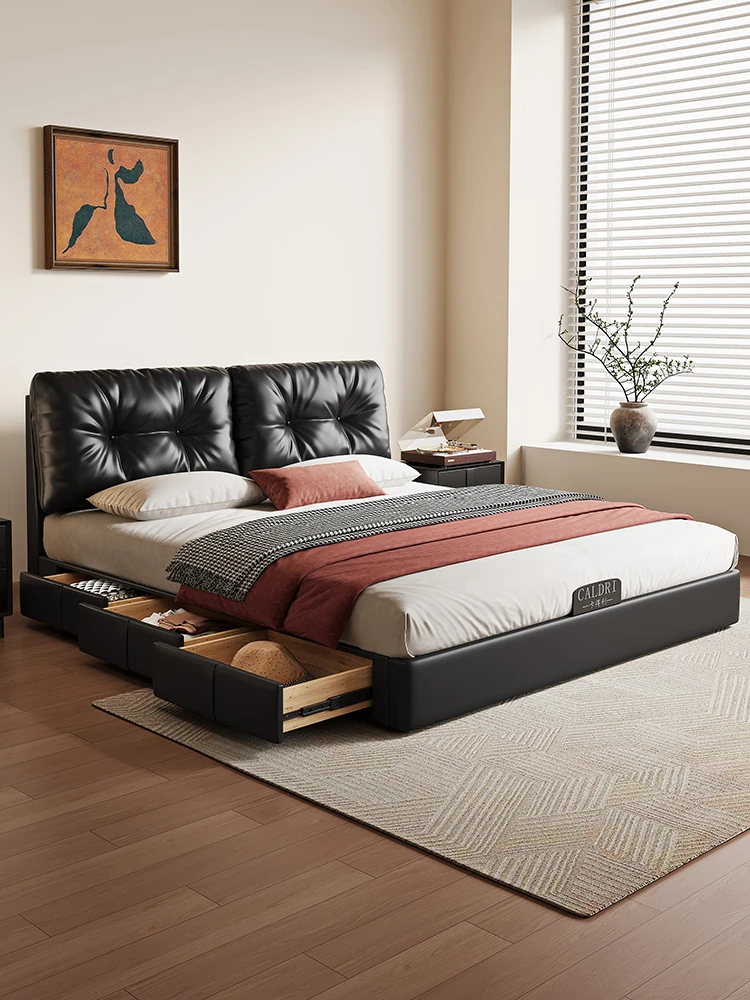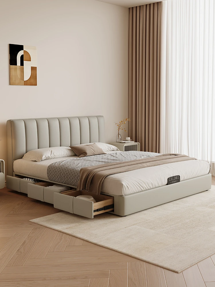 カデリ本革ベッド イタリアンミニマリズム 2024年新作 モダンシンプル主寝室用 引き出し収納付き ダブルベッド すっきりとしたデザインで快適な睡眠を提供します!