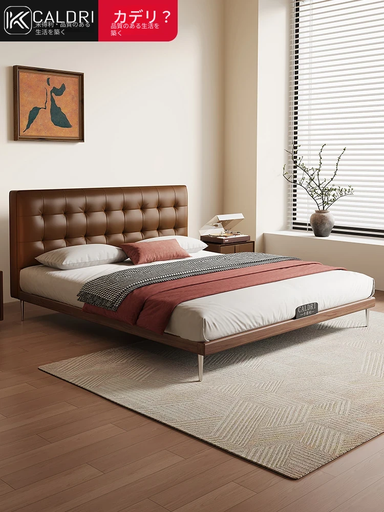 カデリ本革ベッド|高級感あふれるモダンシンプルデザインの全木製ダブルソファベッド|主寝室にぴったりなヴィンテージスタイル!
