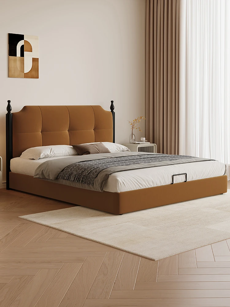カデリ大象の耳ブラック中古ビンテージ風ソフトレザー収納付き大床主寝室用2025新作!おしゃれで機能的なデザインで、あなたの寝室をスタイリッシュに演出します。