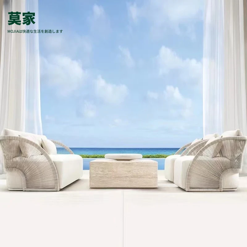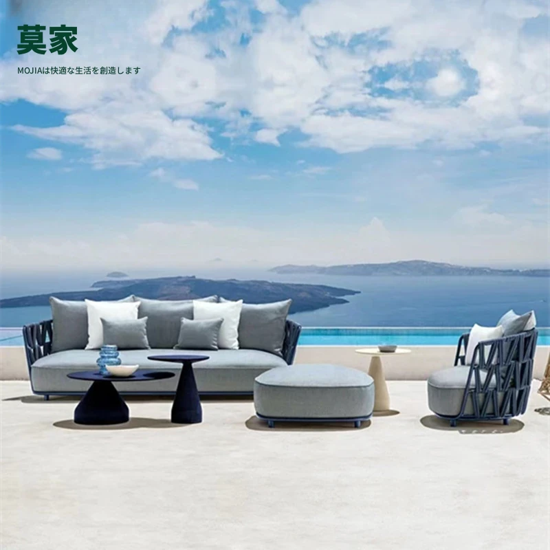 モー家の北欧スタイル・アウトドアソファセット!庭やホテル、別荘、バルコニーにぴったりのデザイン。防水・UVカットのラタン編み家具で、快適な空間を演出します。あなたの庭をおしゃれに変身させましょう!