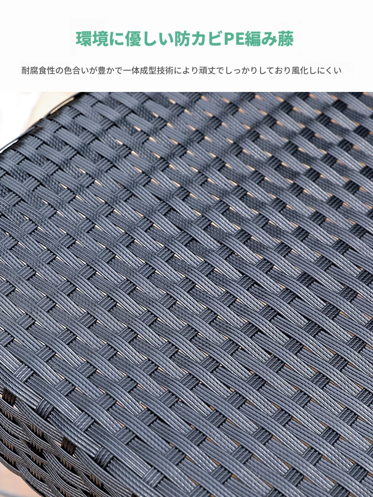 モ家北欧スタイルの無垢材アウトドアソファー|ホテル・別荘・庭に最適!防腐処理済みデザインのラタン編みテーブル&チェアセットで、リラックスできる特別なひとときをお楽しみください。