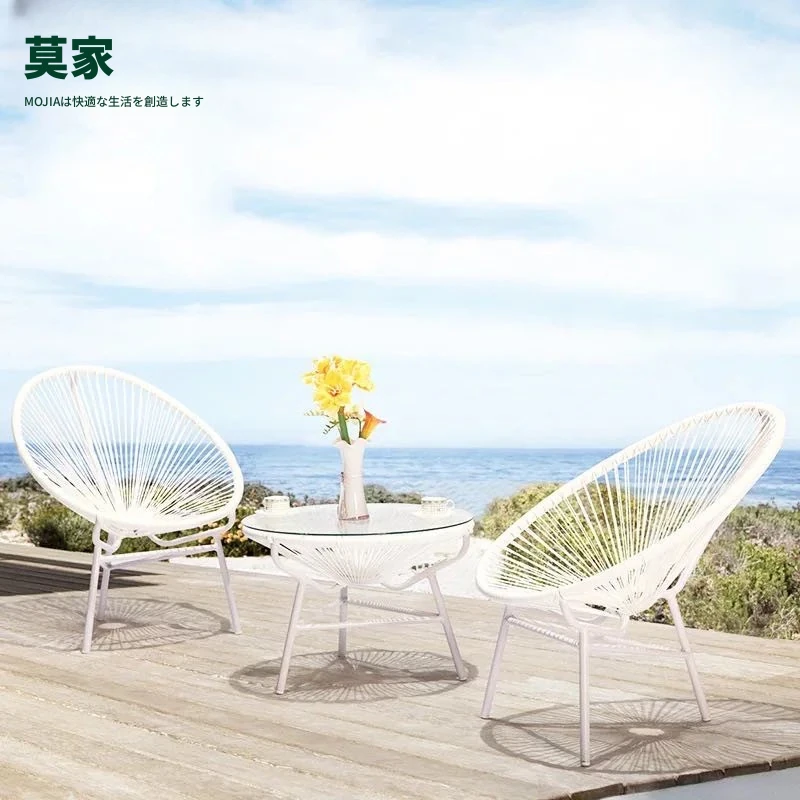 モ家アウトドアソファ ヴィラ庭園用 モダンなリラックス家具 ライフスタイルに最適なクリエイティブ北欧風シンプルデザイン テーブル&チェアセット!快適な時間をお楽しみください。
