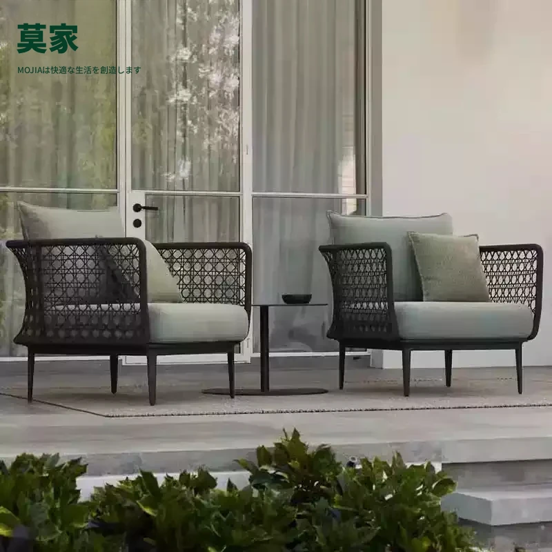モ家北欧スタイルのアウトドアソファ|デザイナーホテル庭園用ラタンチェア|リラクゼーションに最適なクリエイティブ家具|別荘やガーデンにぴったりのスタイリッシュな選択!