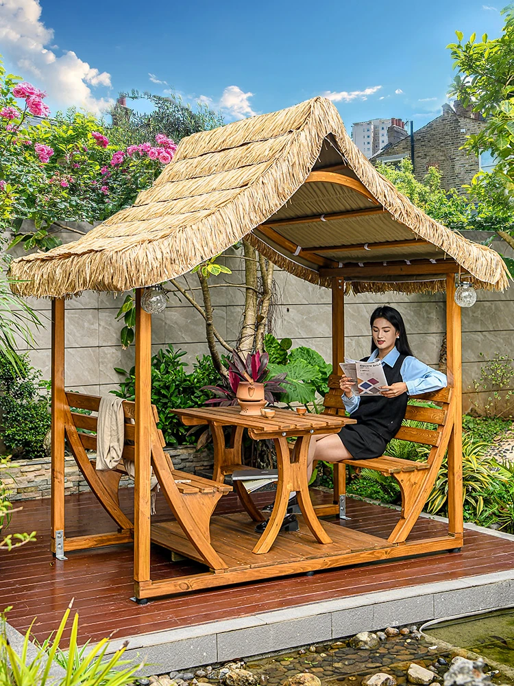 モ家アウトドアパビリオン庭園別荘本物の木製ガーデン農家体験景観民宿四角テラス日よけ付き小屋で、癒しのひとときをお楽しみください!
