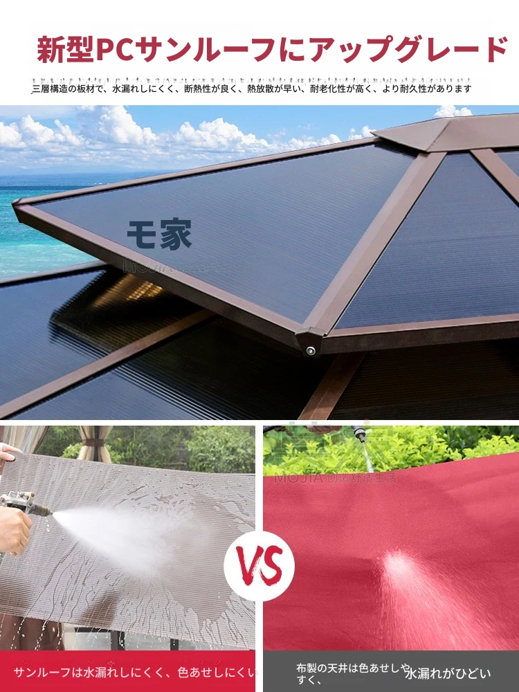 モ家アルミ合金製ブドウ架風テント!おしゃれなアウトドアパビリオンで、庭やバルコニーに最適な日陰スペースを提供。バーベキューやリラックスにぴったりのスイング付き、優雅なビラの庭を演出します!