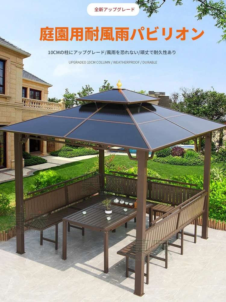 モ家のアウトドアパビリオン 現代的なシンプルデザインのサンシェード 新中式テラス 別荘の庭に最適な中式パビリオンで、優雅なひとときをお楽しみください!