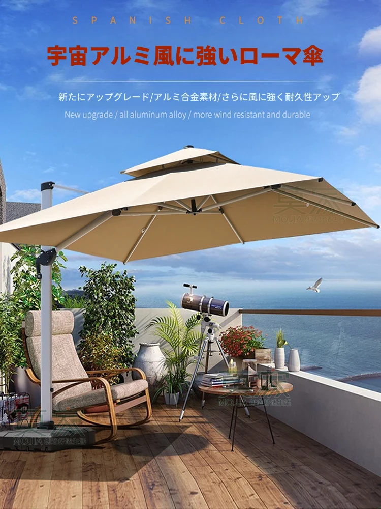 モ家アウトドアパラソル 七字型大パラソル 屋外日除けパラソル 別荘や庭に最適な大型サンシェード 高級アルミ合金製ローマパラソルで、快適な日陰を提供!