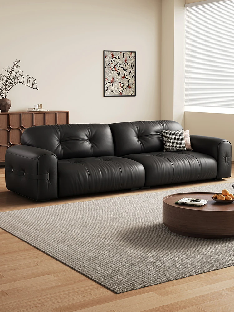 Kadeer Black Italian Minimalist Genuine Leather Sofa - 2024 New Modern Simple Design with Straight-Line Style, Perfect for Contemporary Living Spaces