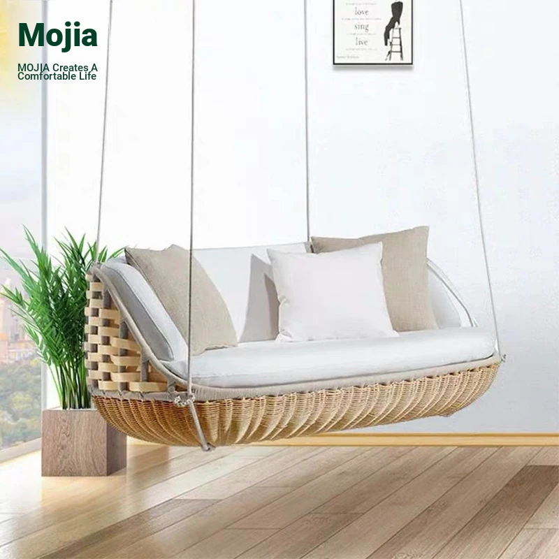 Mo Family Outdoor Swing - Cozy Double Hanging Basket for Patios, Villas, and Gardens. Perfect for Relaxation at Resorts and Travel Destinations. Trendy Sunroom Chair for Couples.