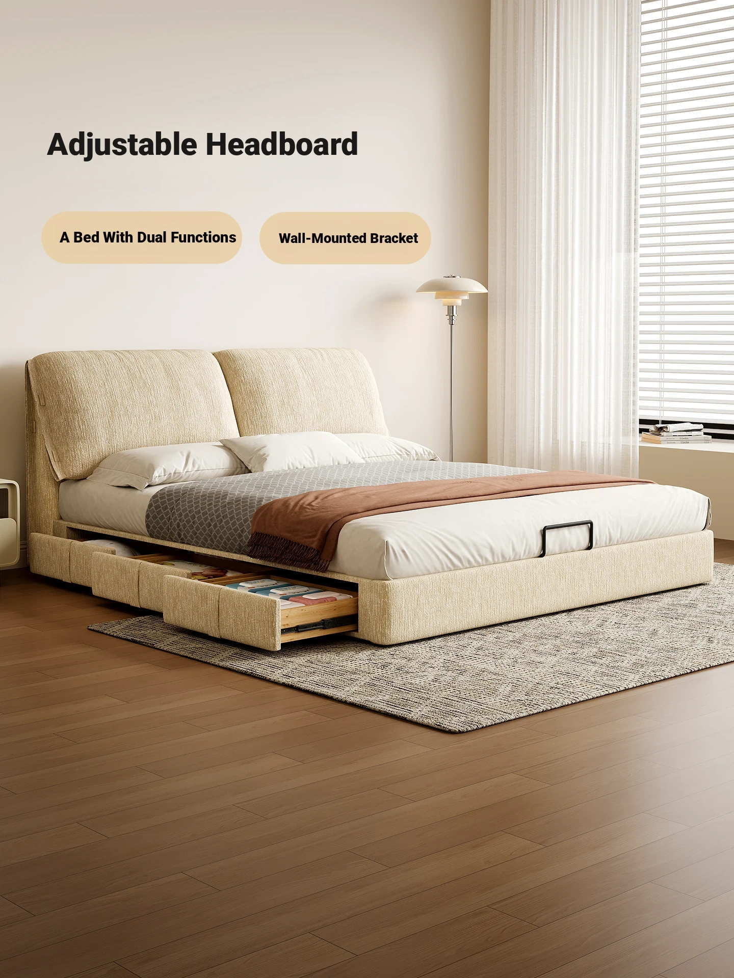 KADLI Modern Minimalist Elephant Ear Chenille Upholstered Bed with Storage - Stylish Double Bed for Master Bedroom, Perfect for Organized Living