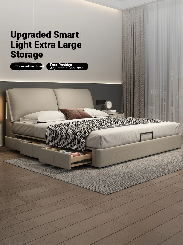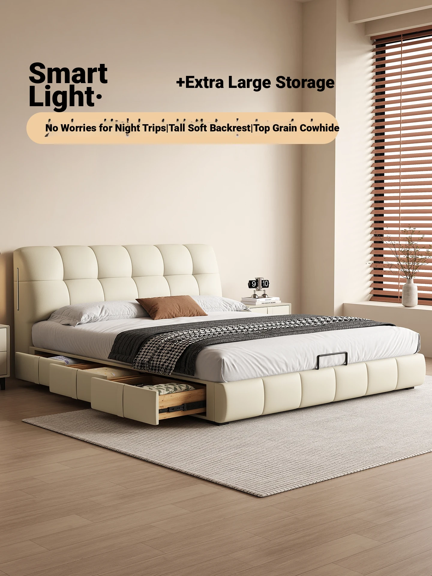 Kadeer Luxury Elephant Ear Bed - Modern Minimalist High-Storage Double Bed with Genuine Leather, Perfect for Master Bedrooms and Stylish Living Spaces