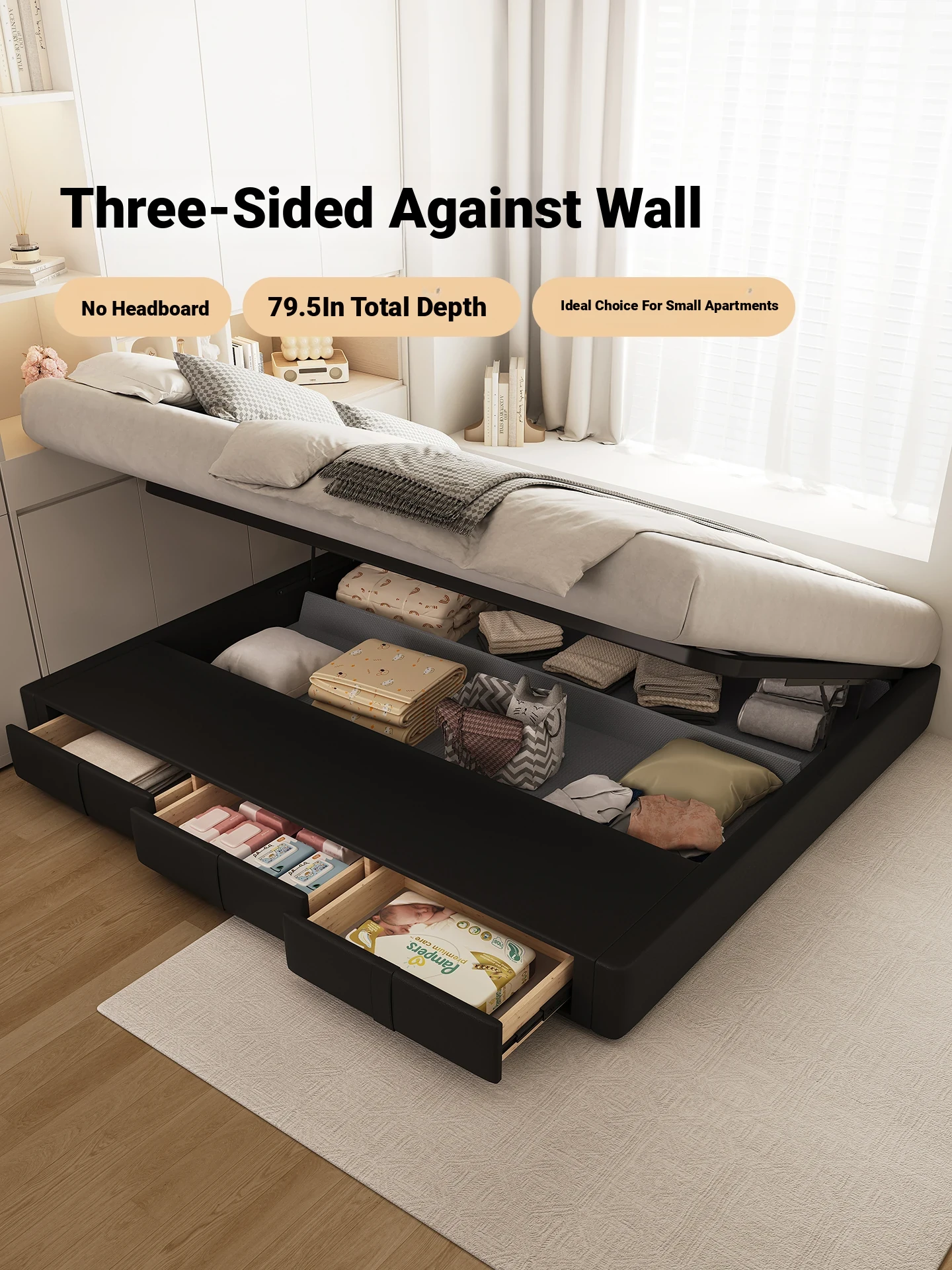 Kadeli Black Tatami Bed with Storage Drawers - Space-Saving Design for Small Apartments, Side-Opening Slatted Frame for Maximum Efficiency