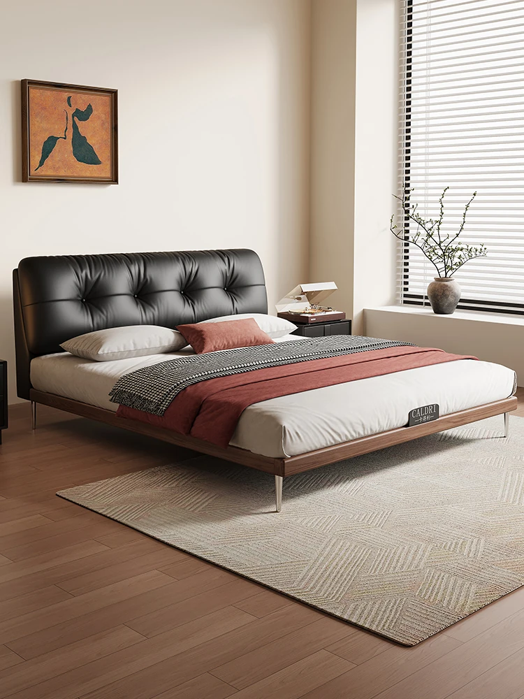 Kadeer Solid Wood Bed - Luxurious French Vintage Style for Master Bedroom, Modern Minimalist Design, 2024 New Arrival with Genuine Leather Upholstery