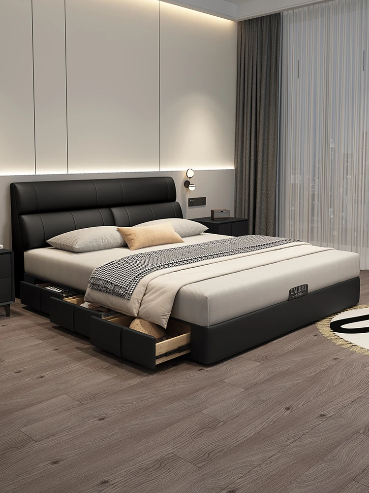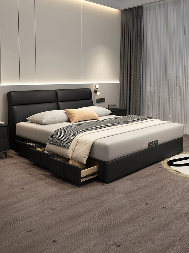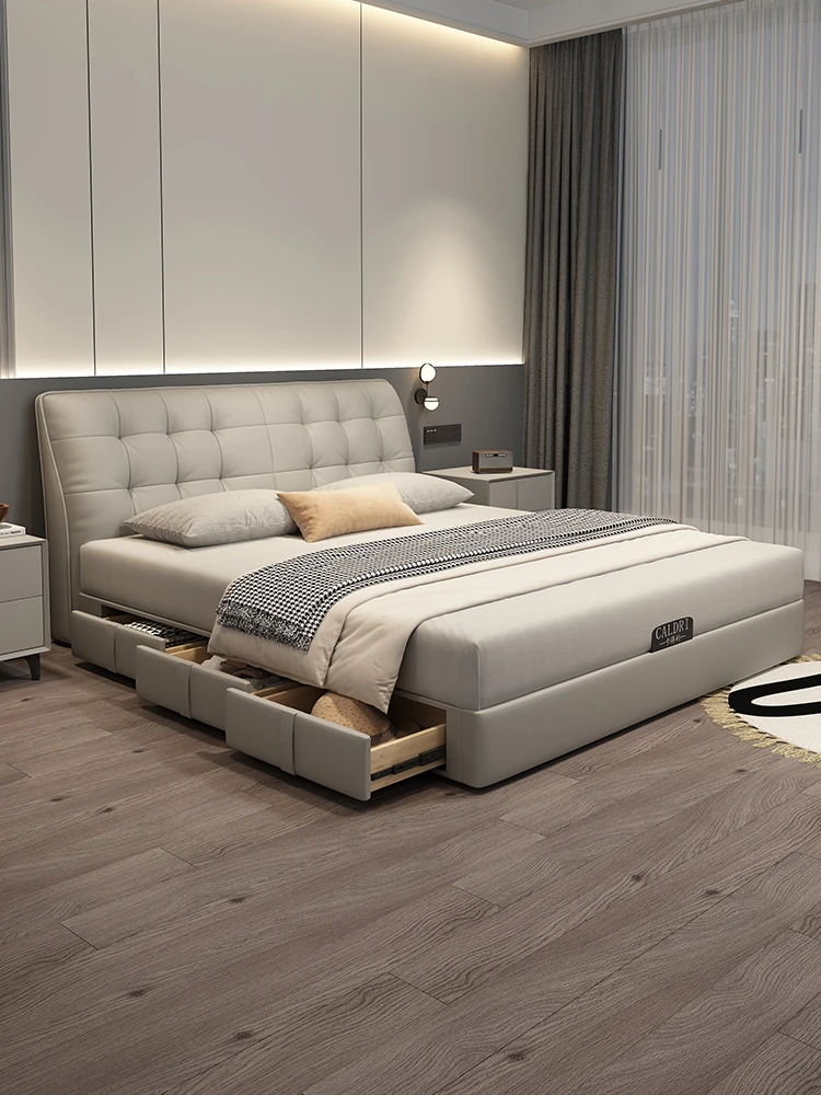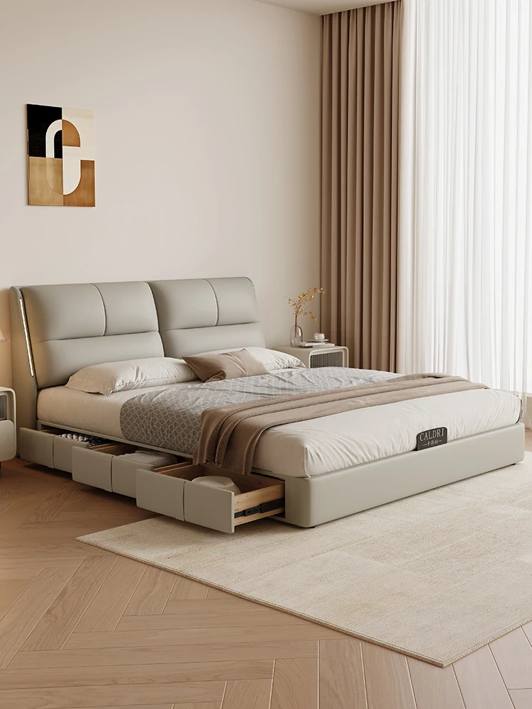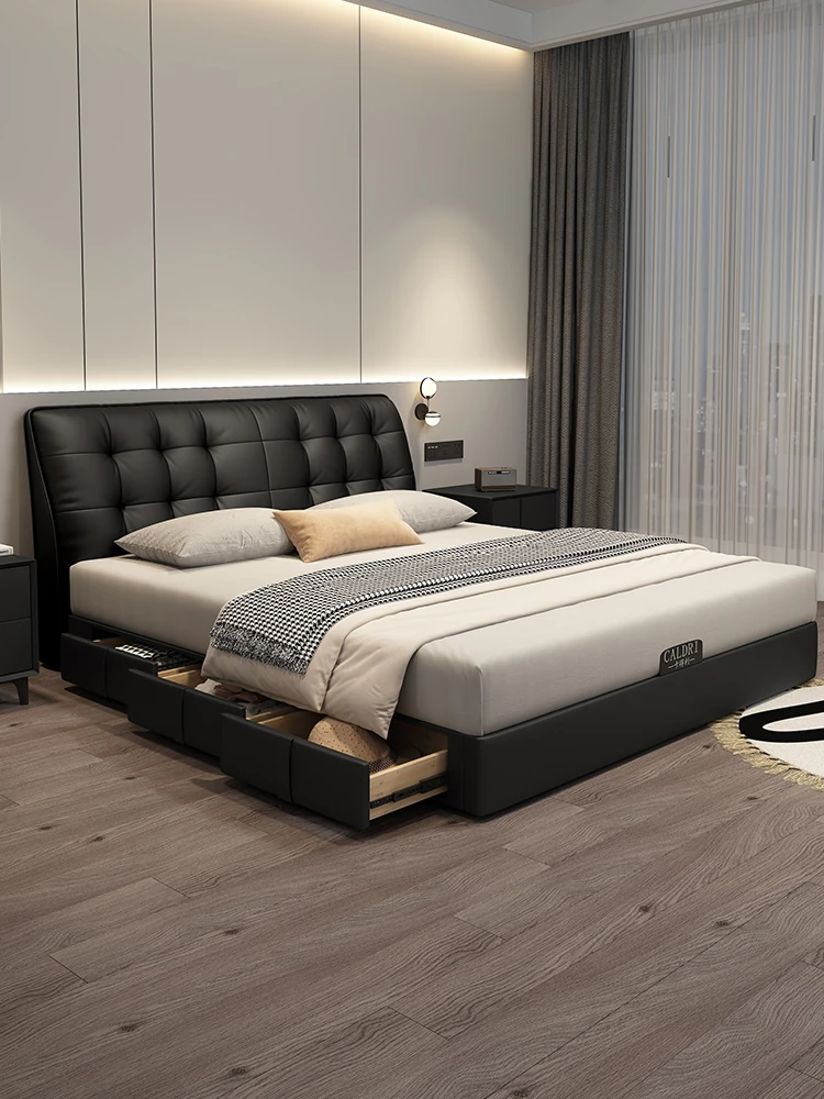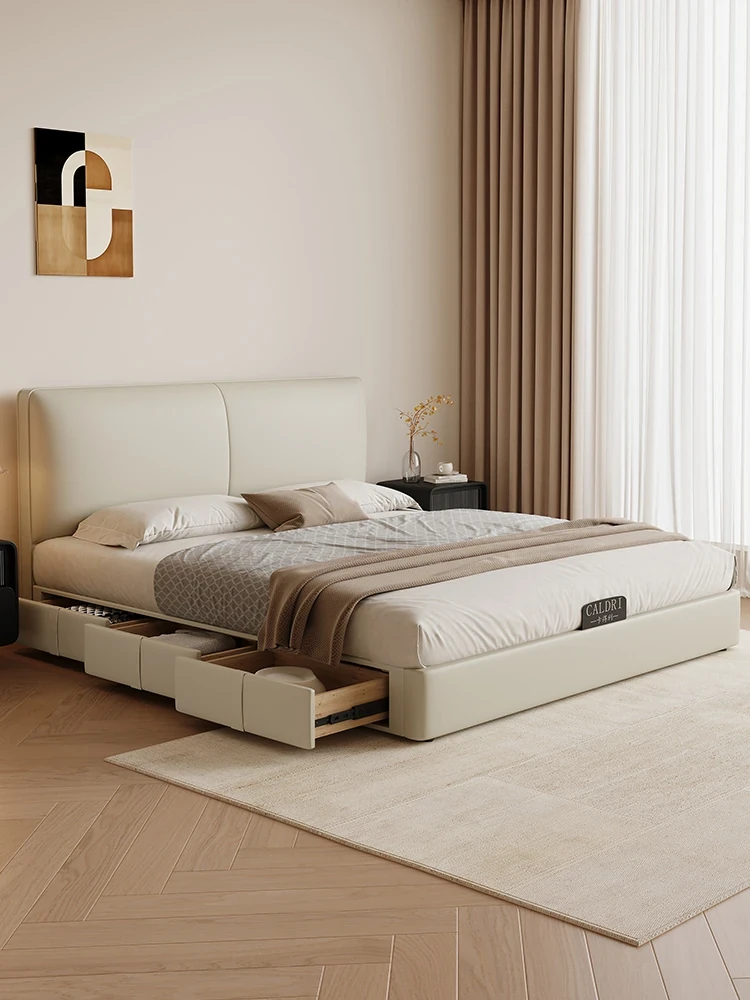 KADILI Modern Minimalist Genuine Leather Bed - Luxurious and Spacious Storage with Drawers, Italian-Style Double Bed for Master Bedroom