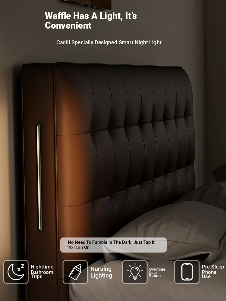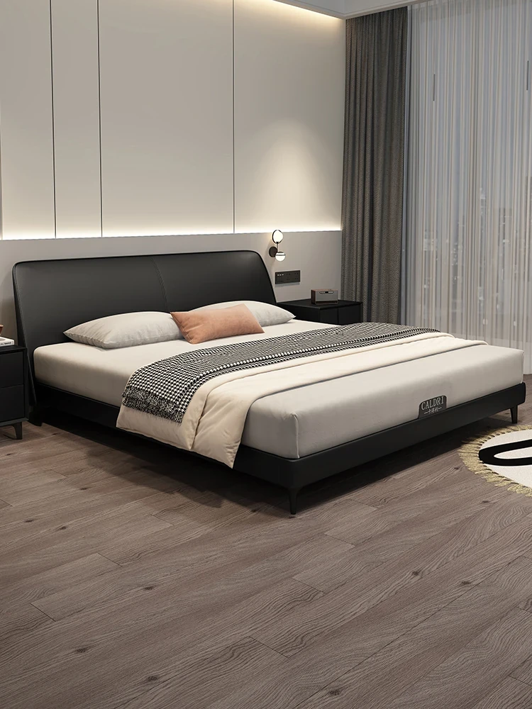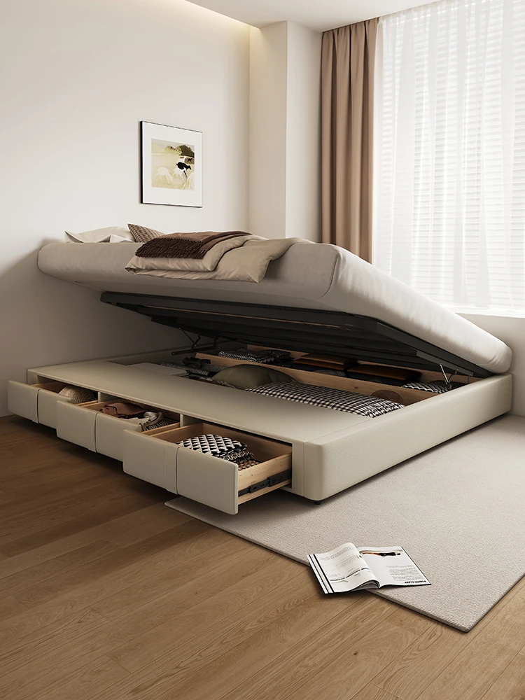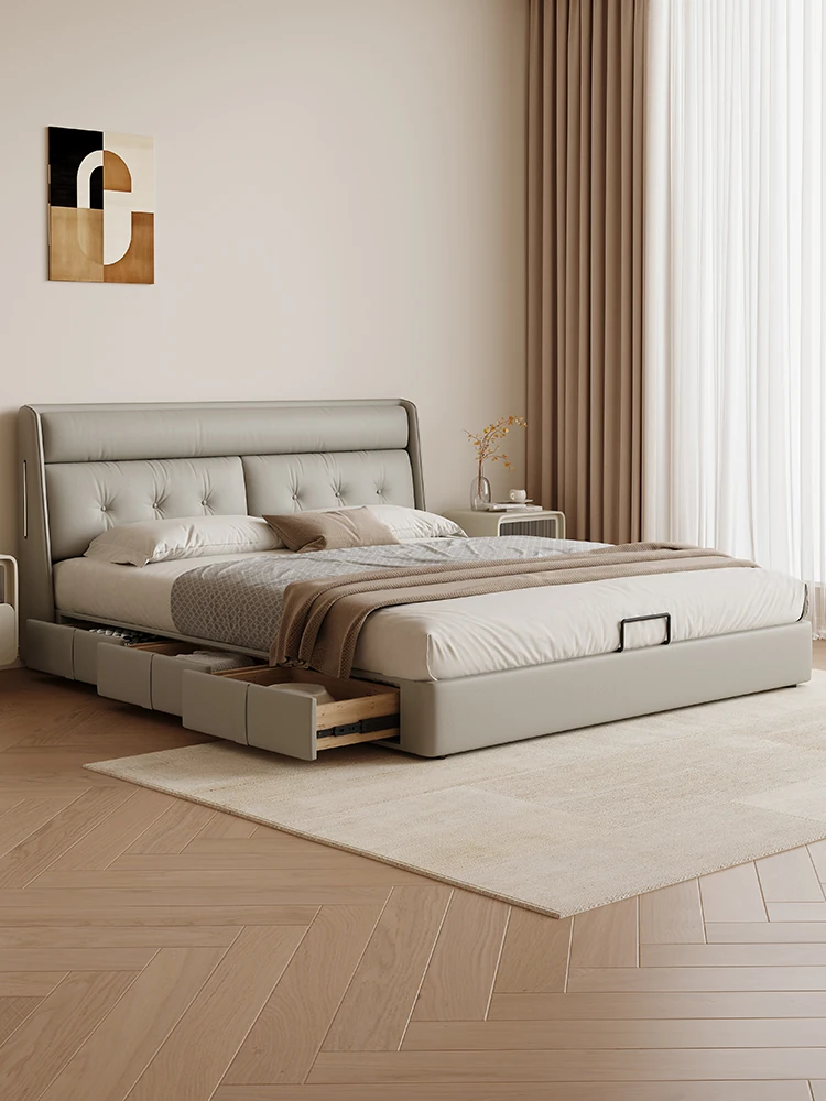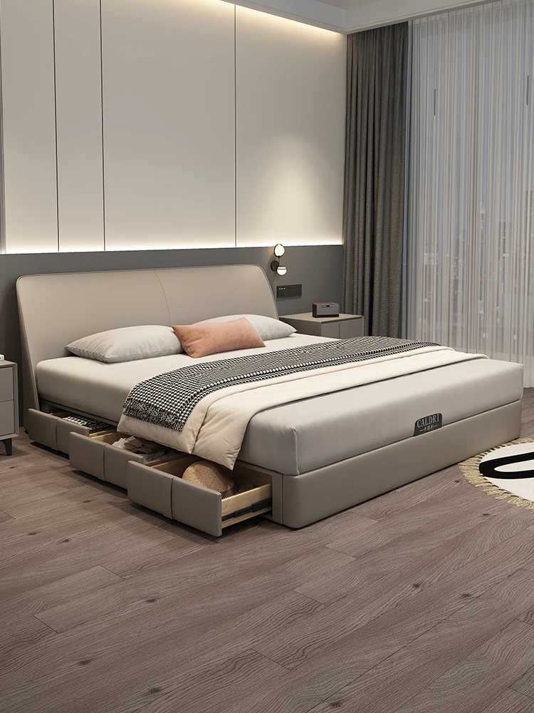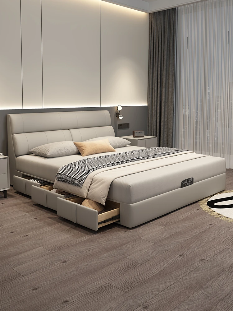 KADILI Modern Minimalist Genuine Leather Bed - Luxurious and Spacious Storage with Drawers, Italian-Style Double Bed for Master Bedroom