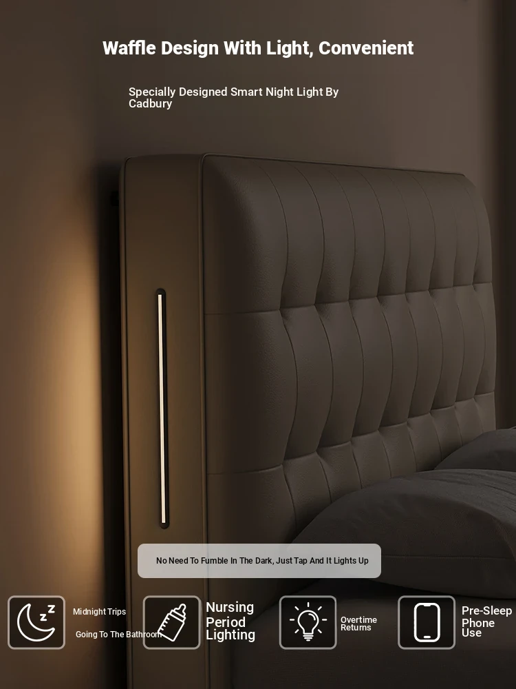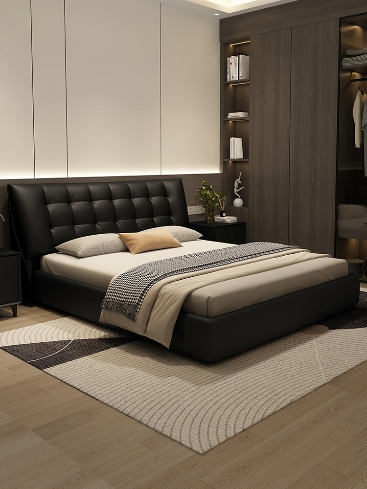Kadeer Modern Minimalist Double Soft Leather Bed - Luxurious Storage Solution for Master Bedrooms in Compact Spaces