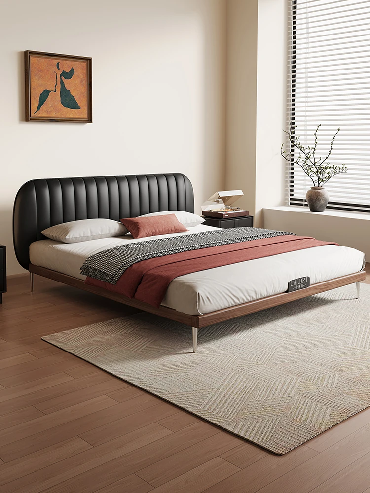 Cadili Black Genuine Leather Bed - 2024 New Italian Minimalist Design, Modern Simple Storage King Size Bed for Master Bedroom