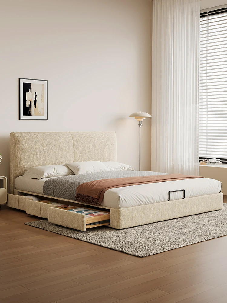 Kedali Modern Minimalist Chenille Elephant Ear Bed - Stylish Solid Wood and Fabric Double Bed for Small Master Bedrooms