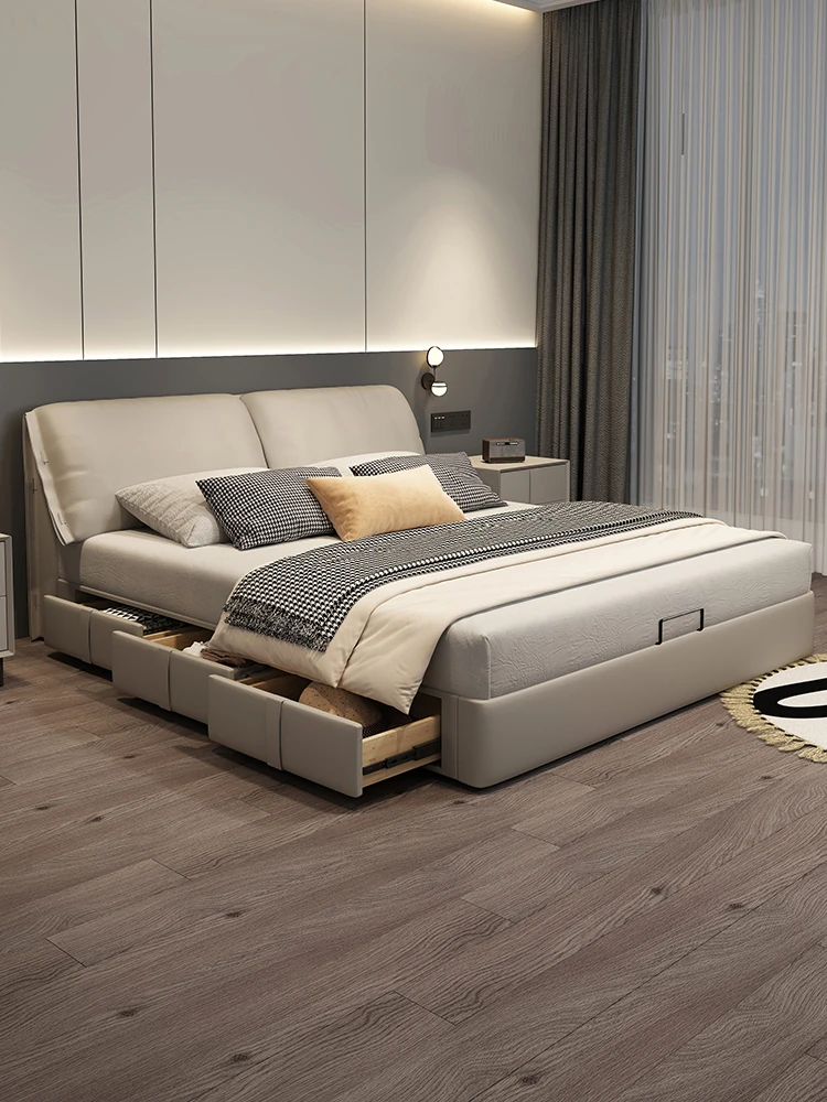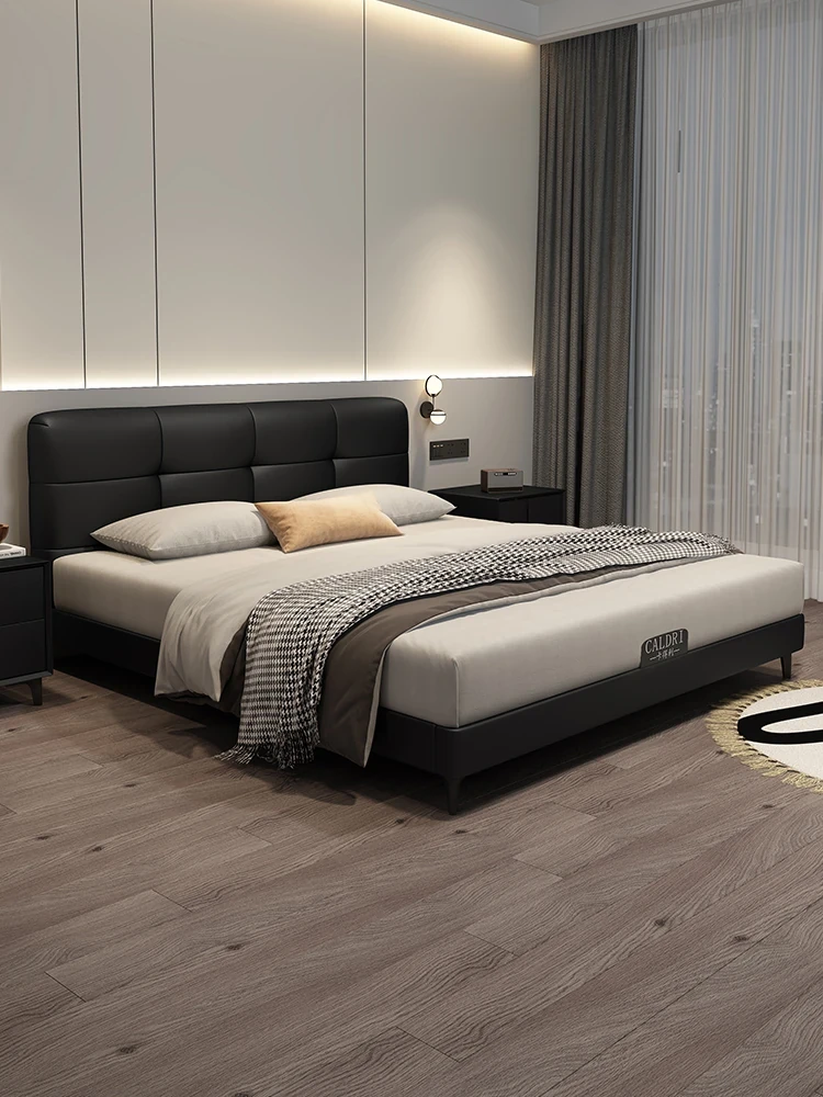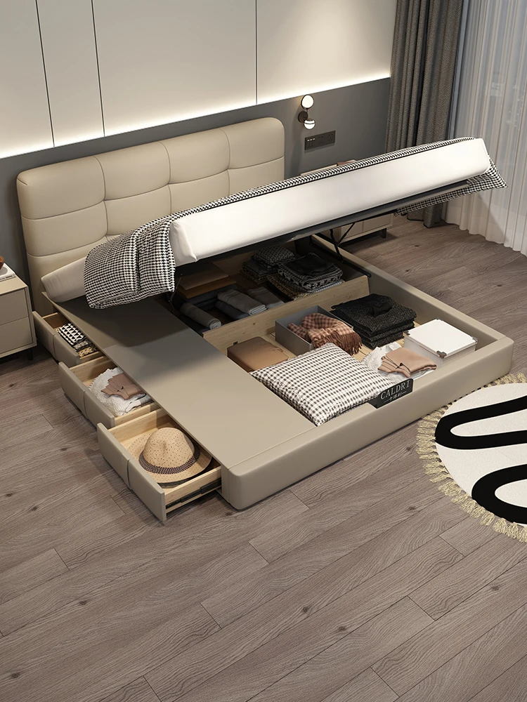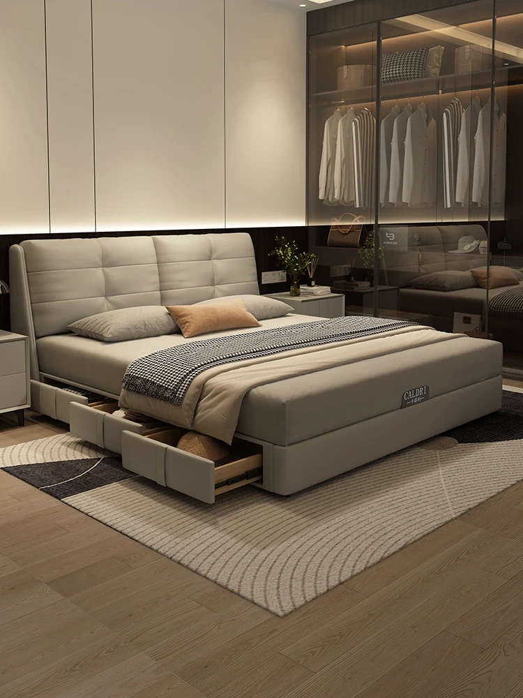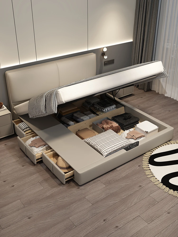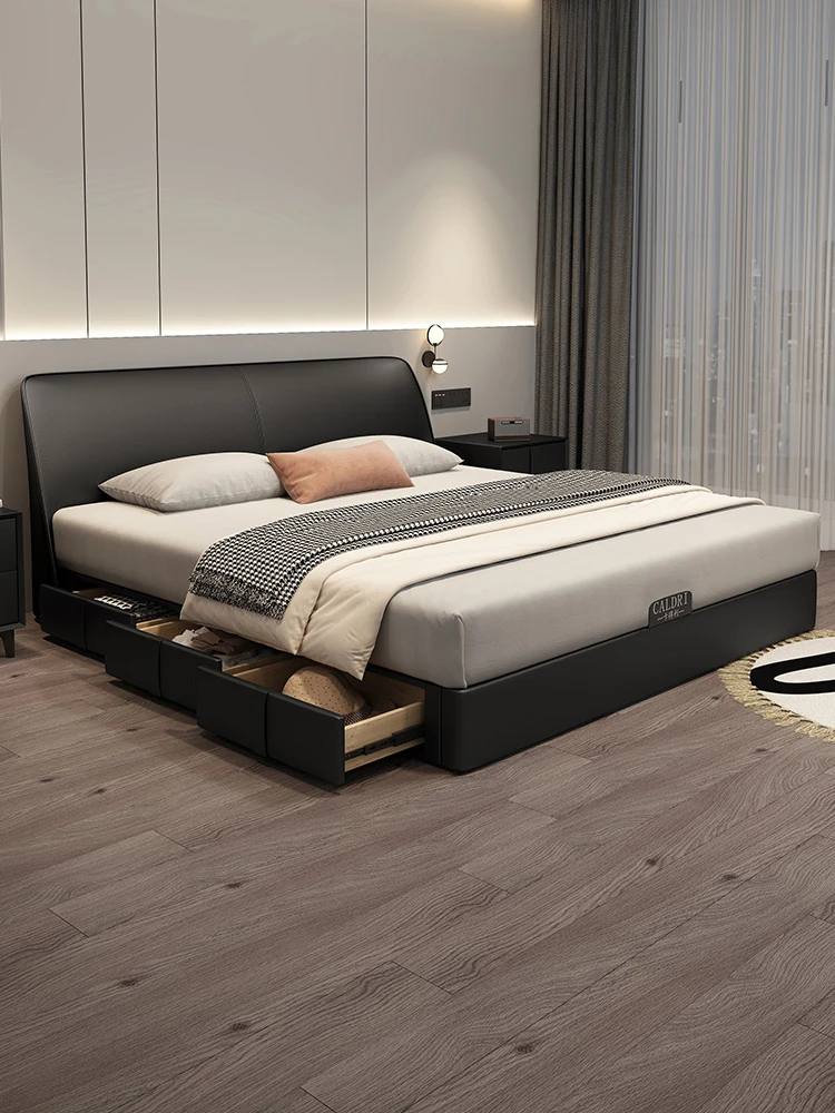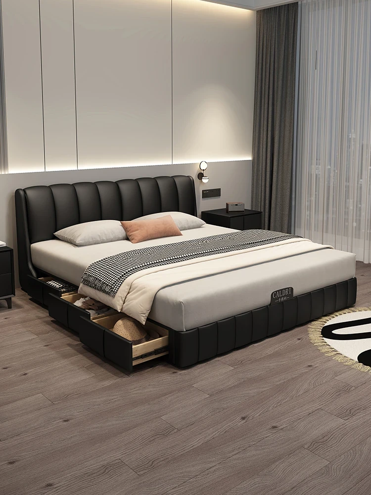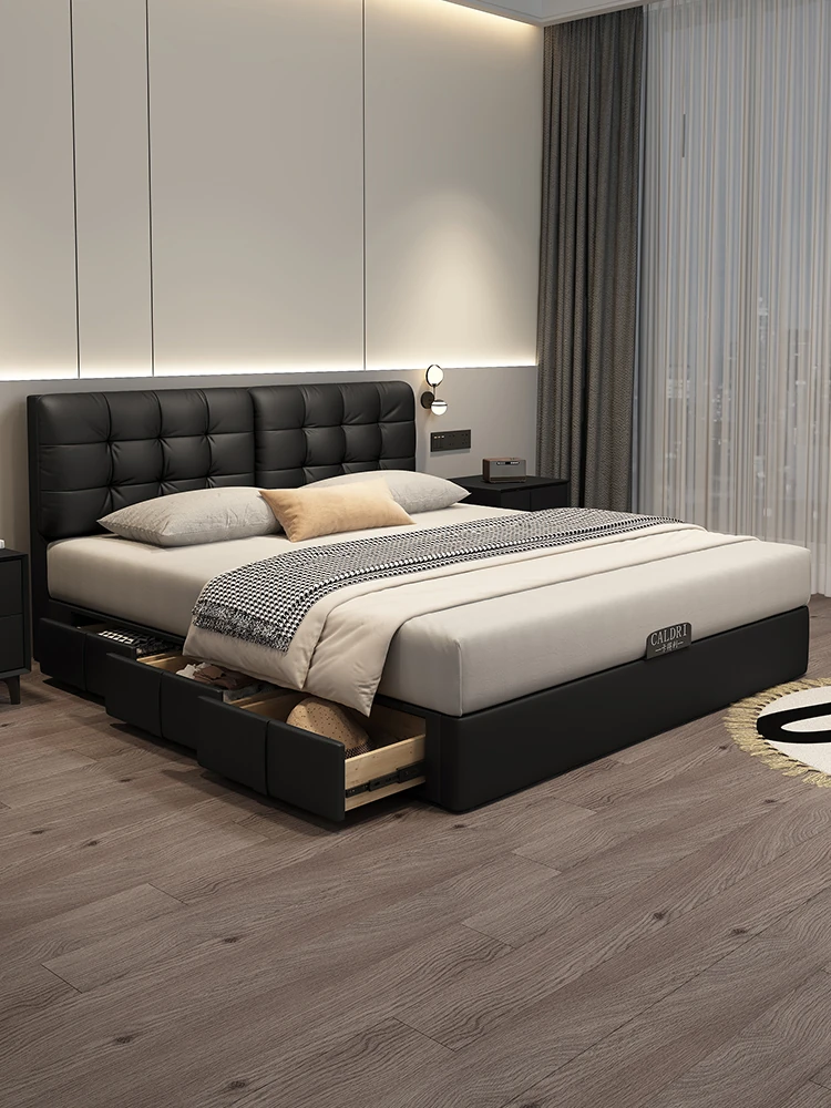 Cadelii Italian Minimalist Genuine Leather Bed - Modern Double Storage Bed for Master Bedroom, 1.5m/1.8m Size, Stylish and Functional Design