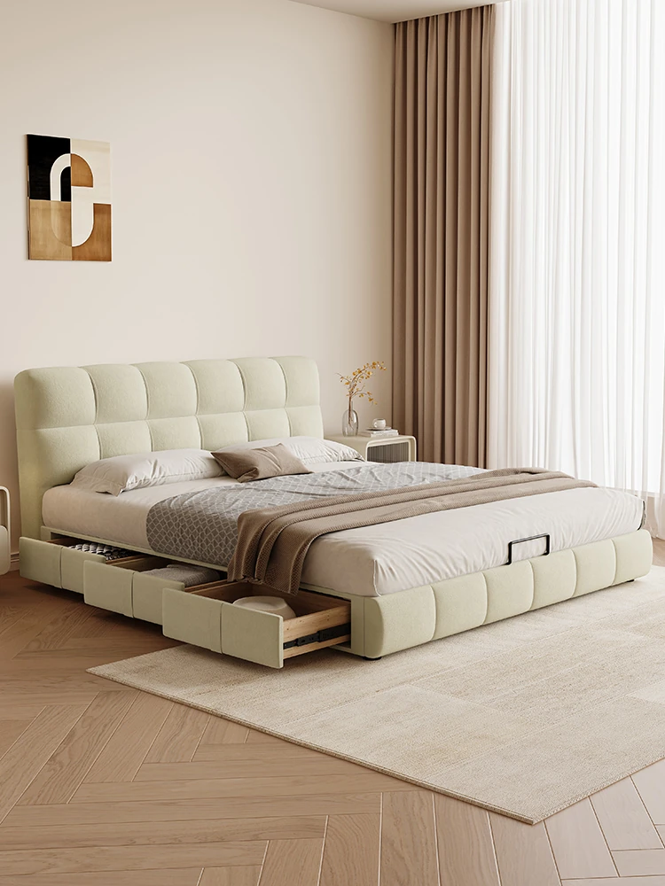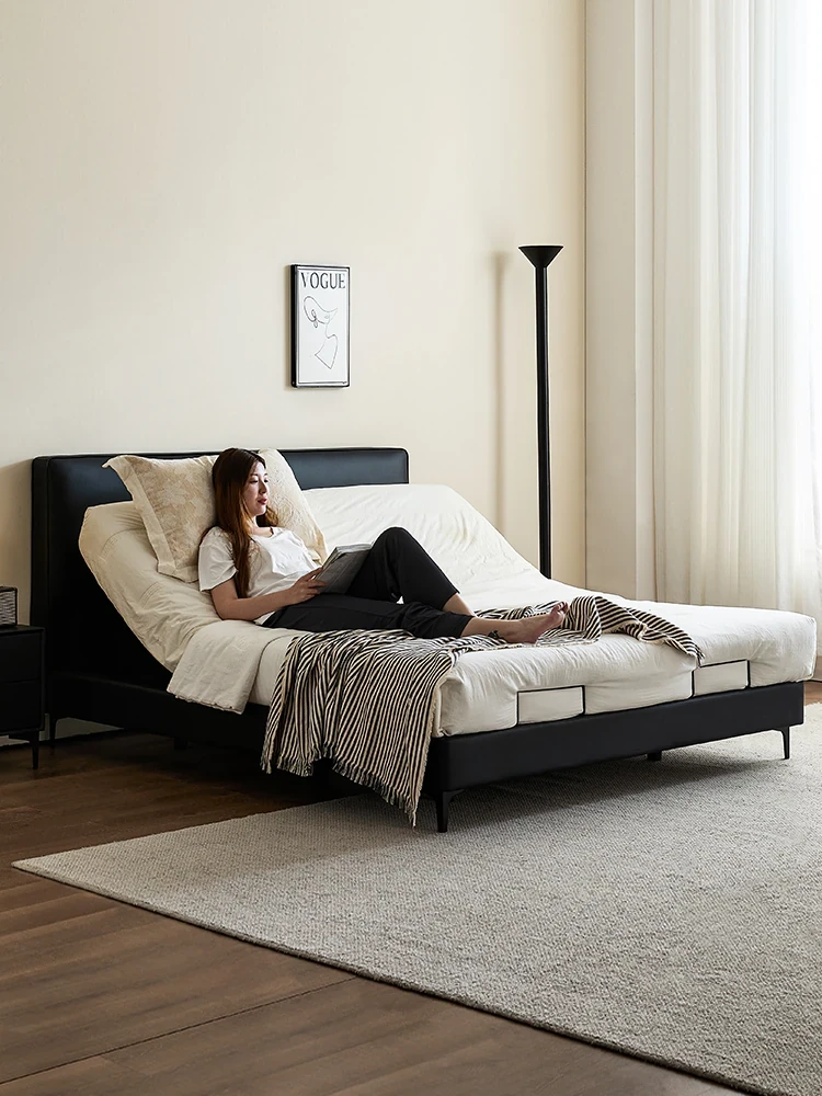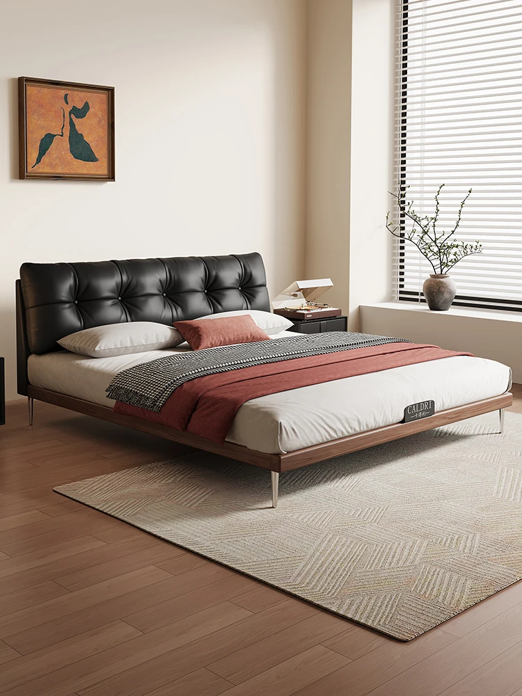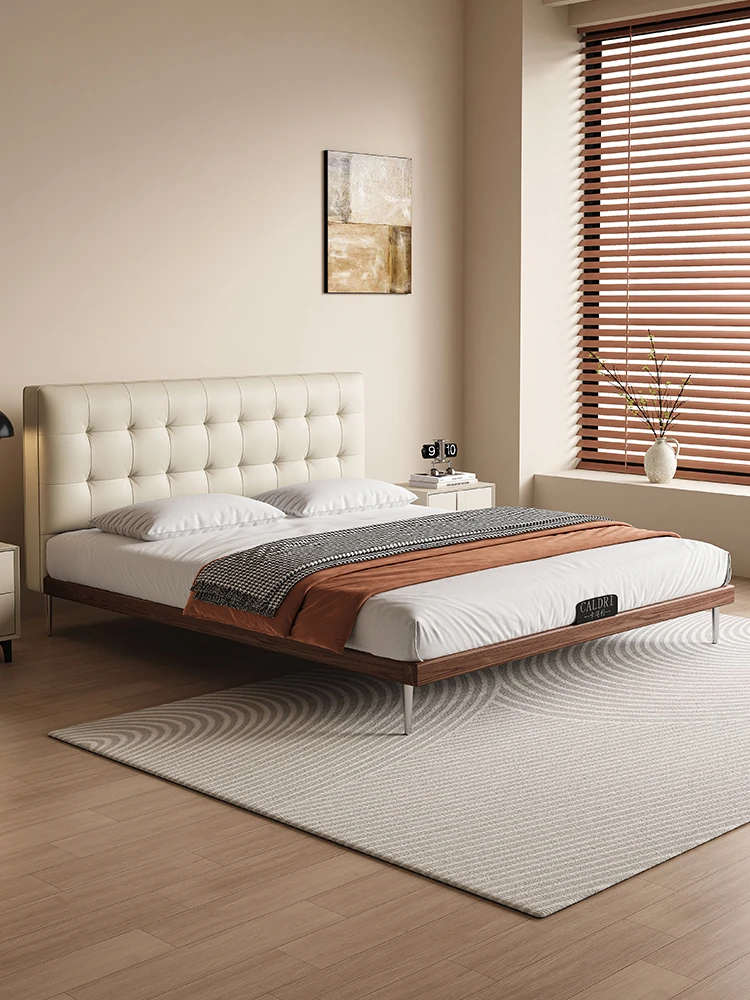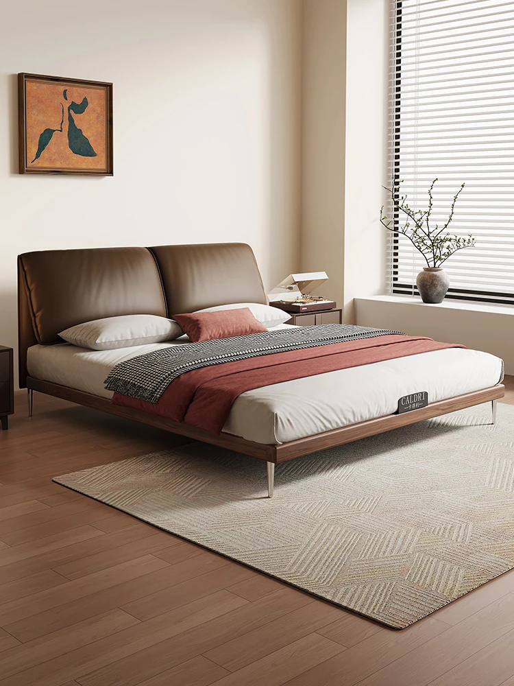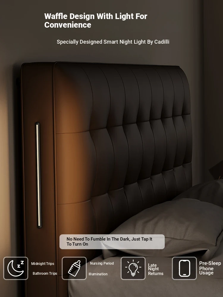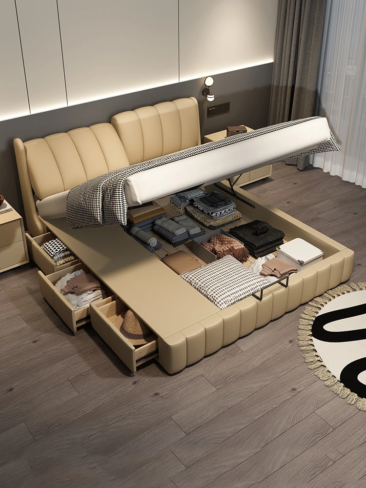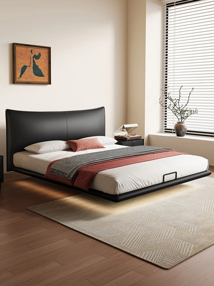 Cadelii Italian Minimalist Genuine Leather Bed - Modern Double Storage Bed for Master Bedroom, 1.5m/1.8m Size, Stylish and Functional Design