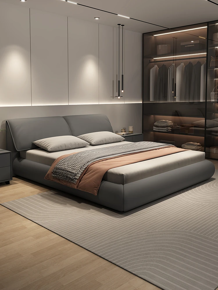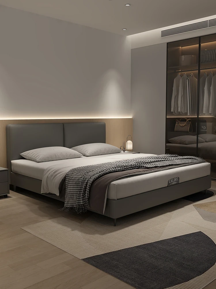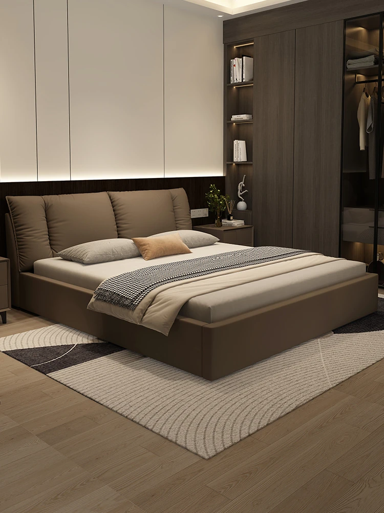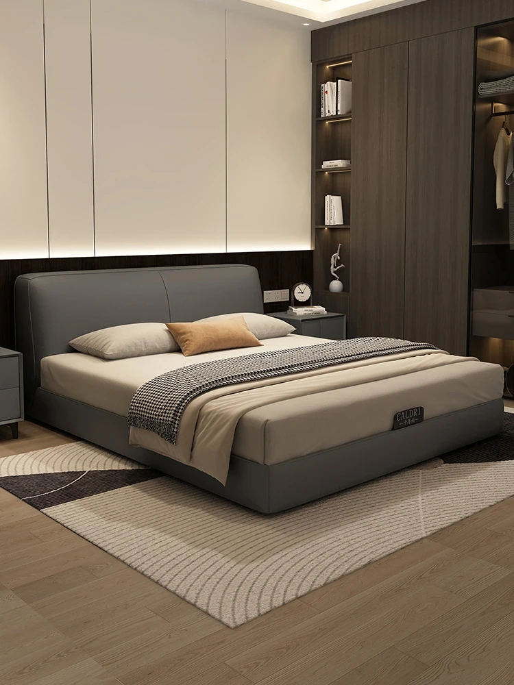 KADILI Modern Minimalist Genuine Leather Bed - Elegant High-End Soft Pack Storage Solution, 1.8m Double Bed for Master Bedroom, Perfect for Newlyweds