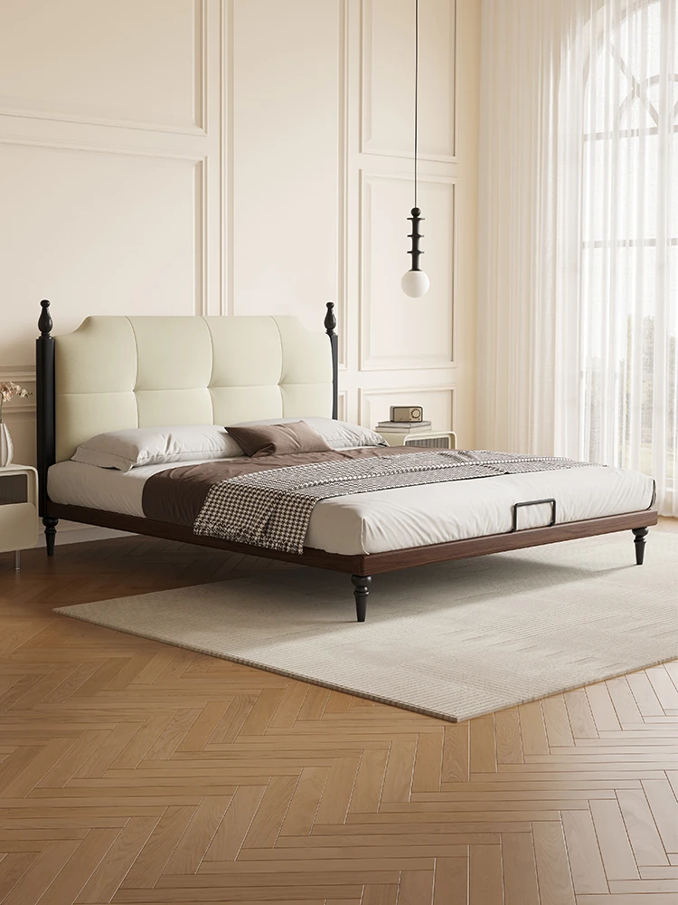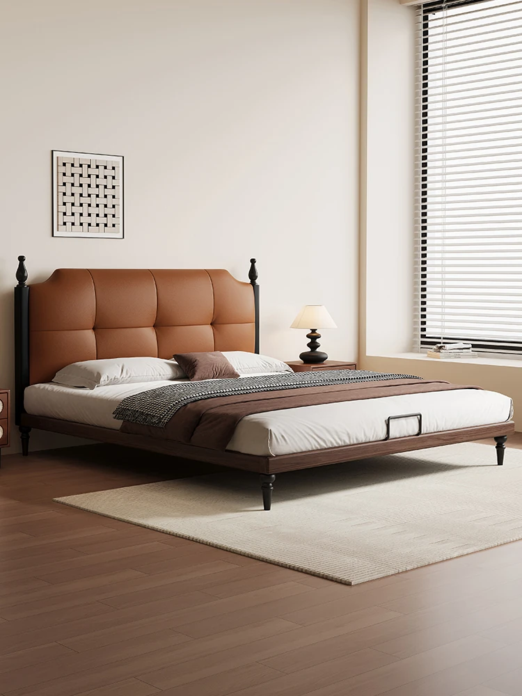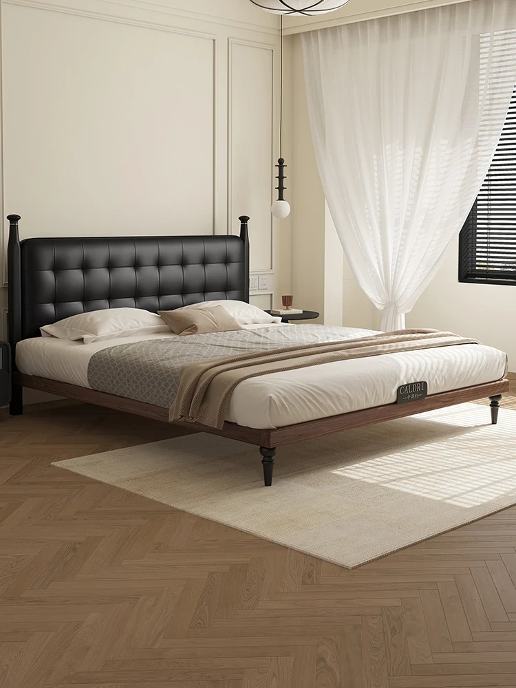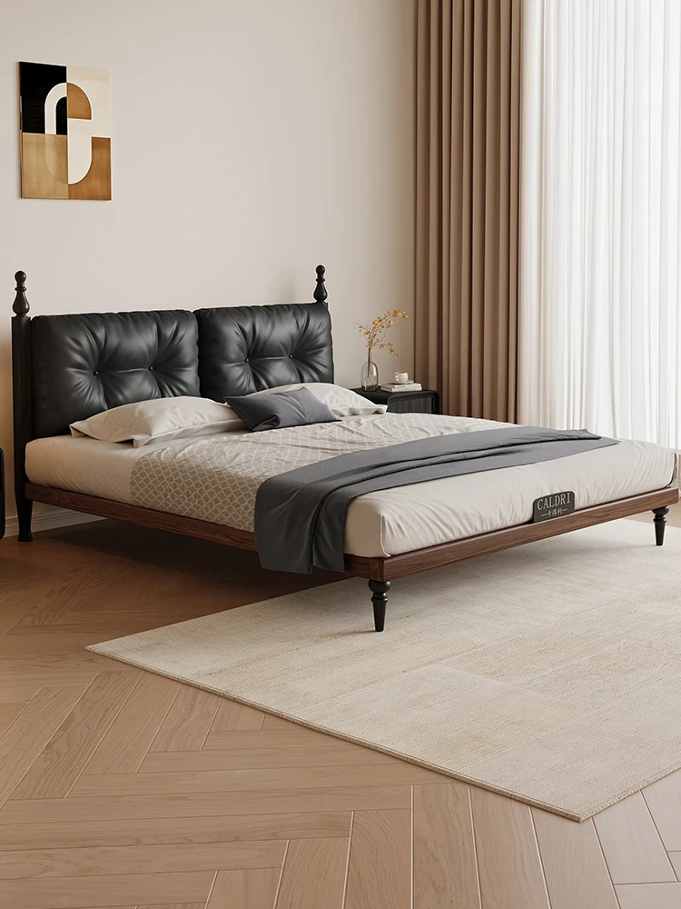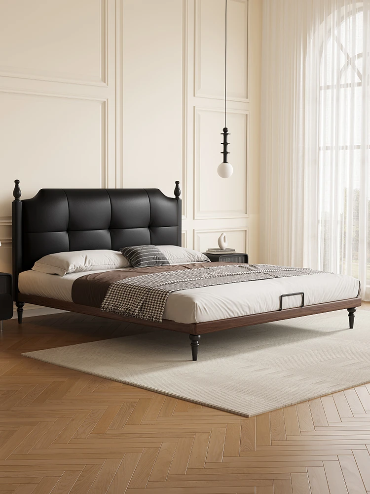 Kadeli Genuine Leather Bed for Master Bedroom - Elegant French Vintage Solid Wood Bed for Small Spaces - 2024 New Arrival