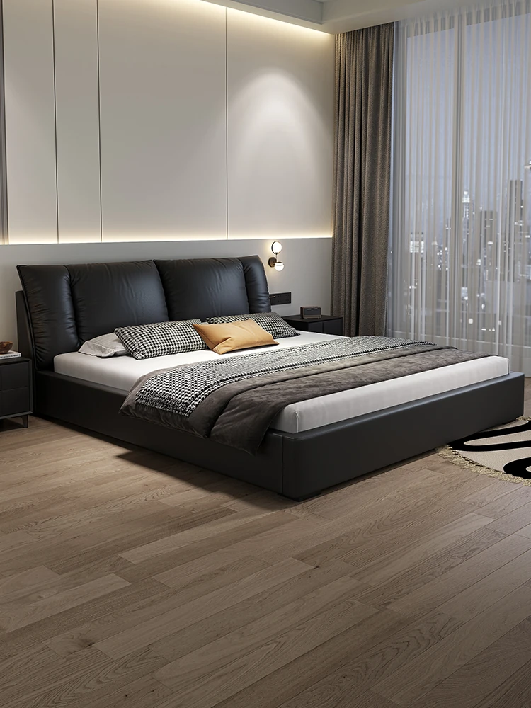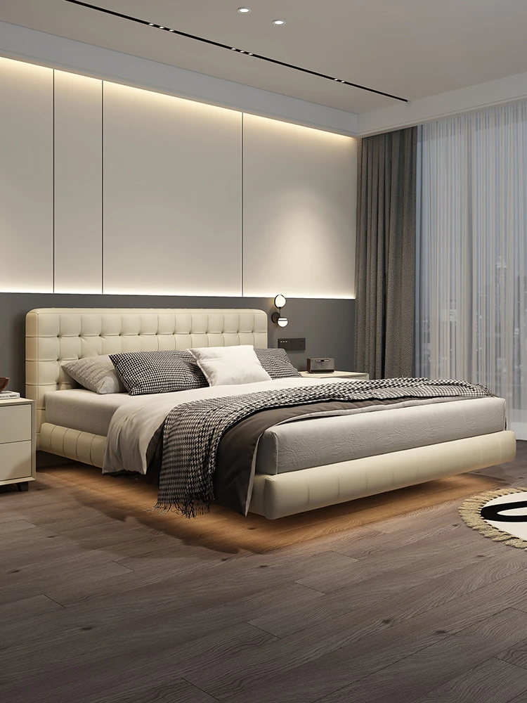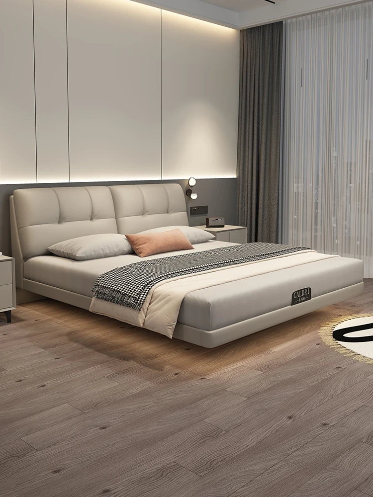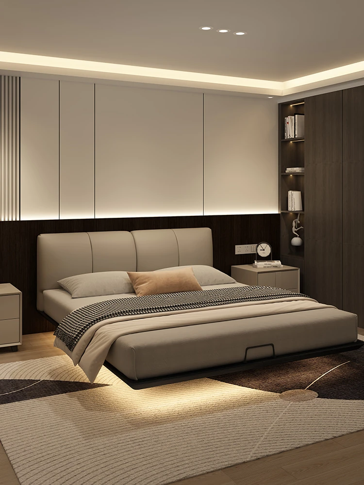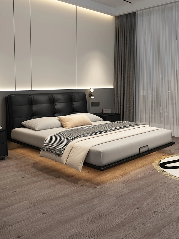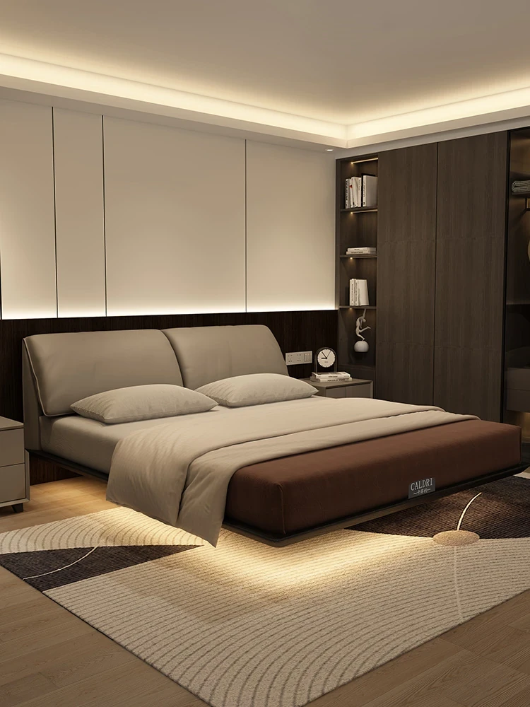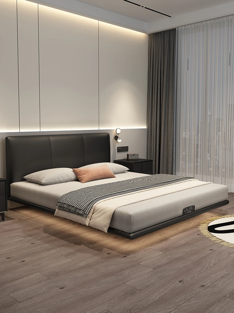 Kadeer Floating Genuine Leather Bed - Italian Minimalist Double Bed for Master Bedroom, High-End Modern Design, New Arrival 2024