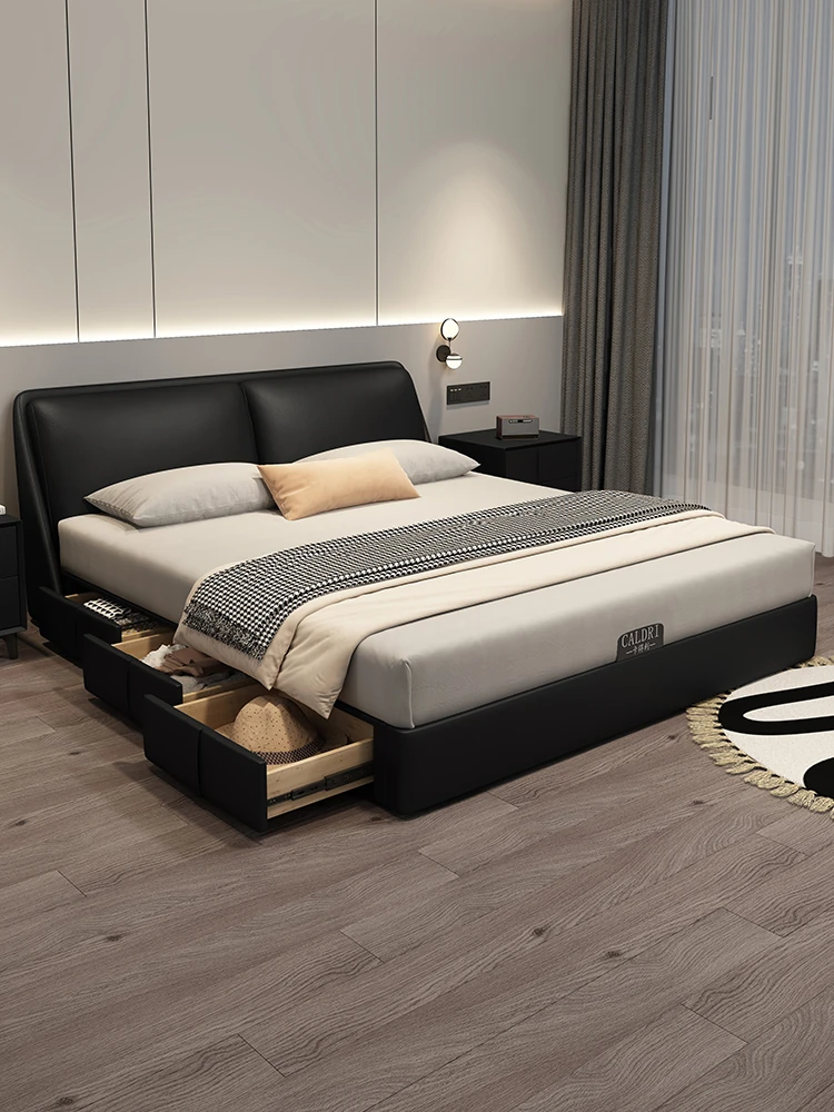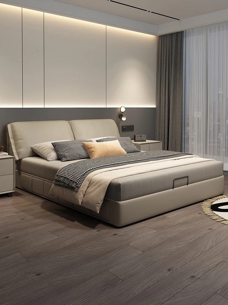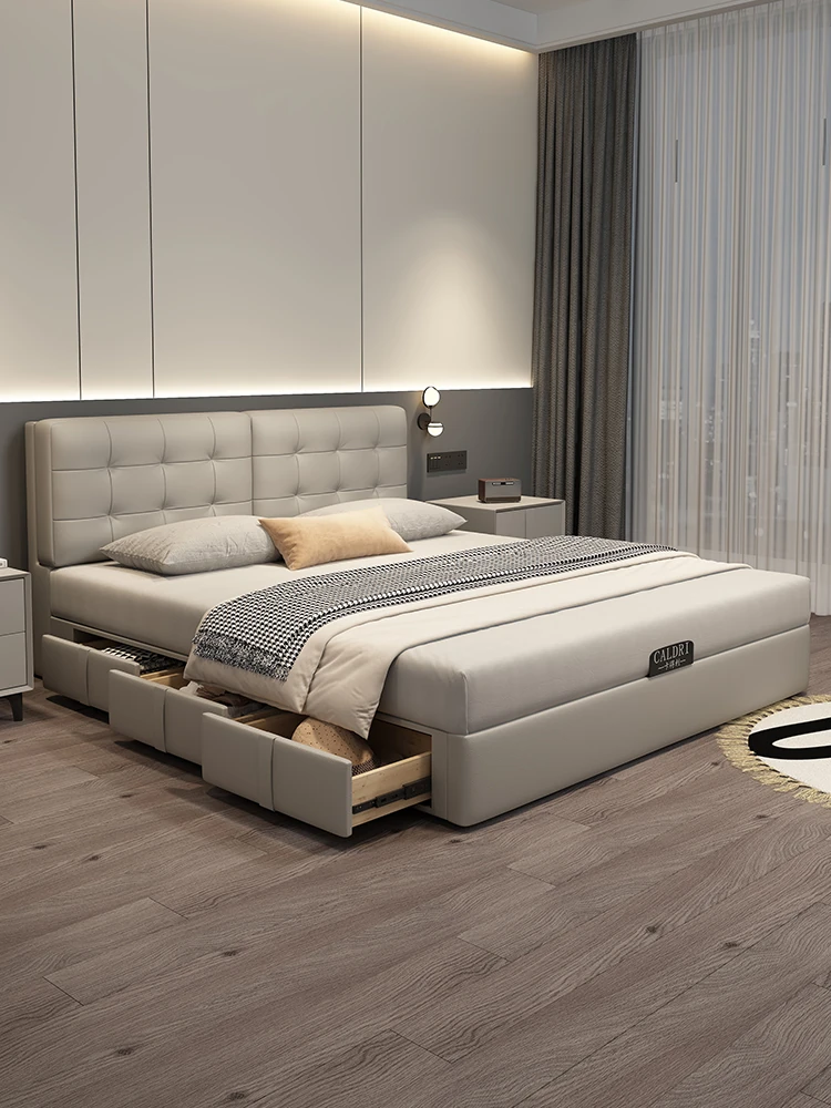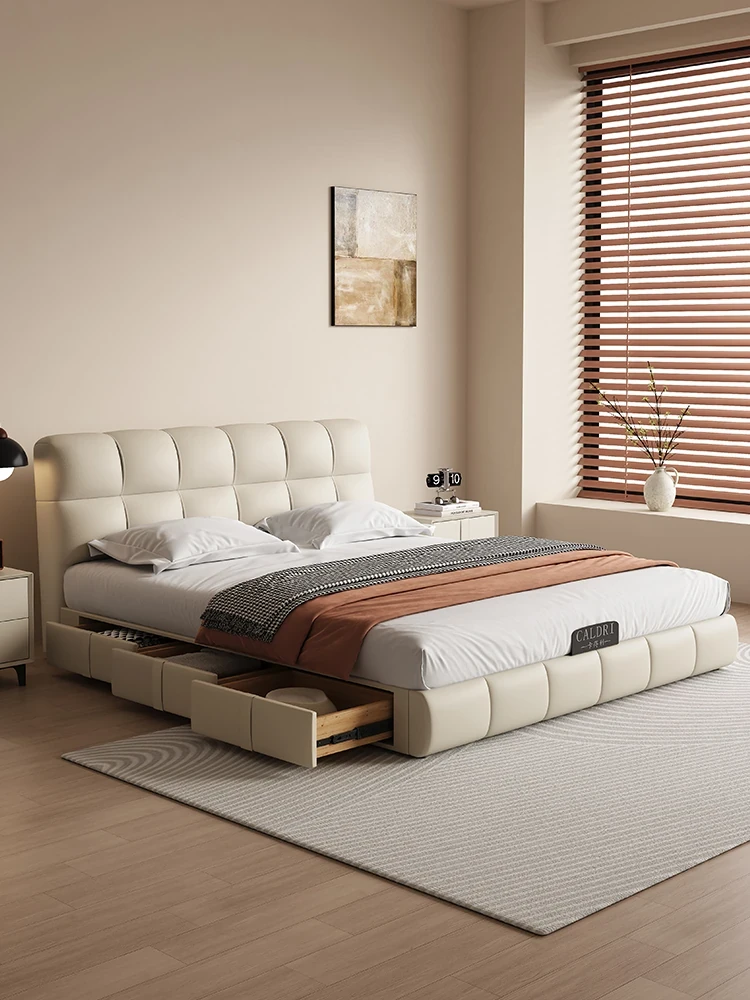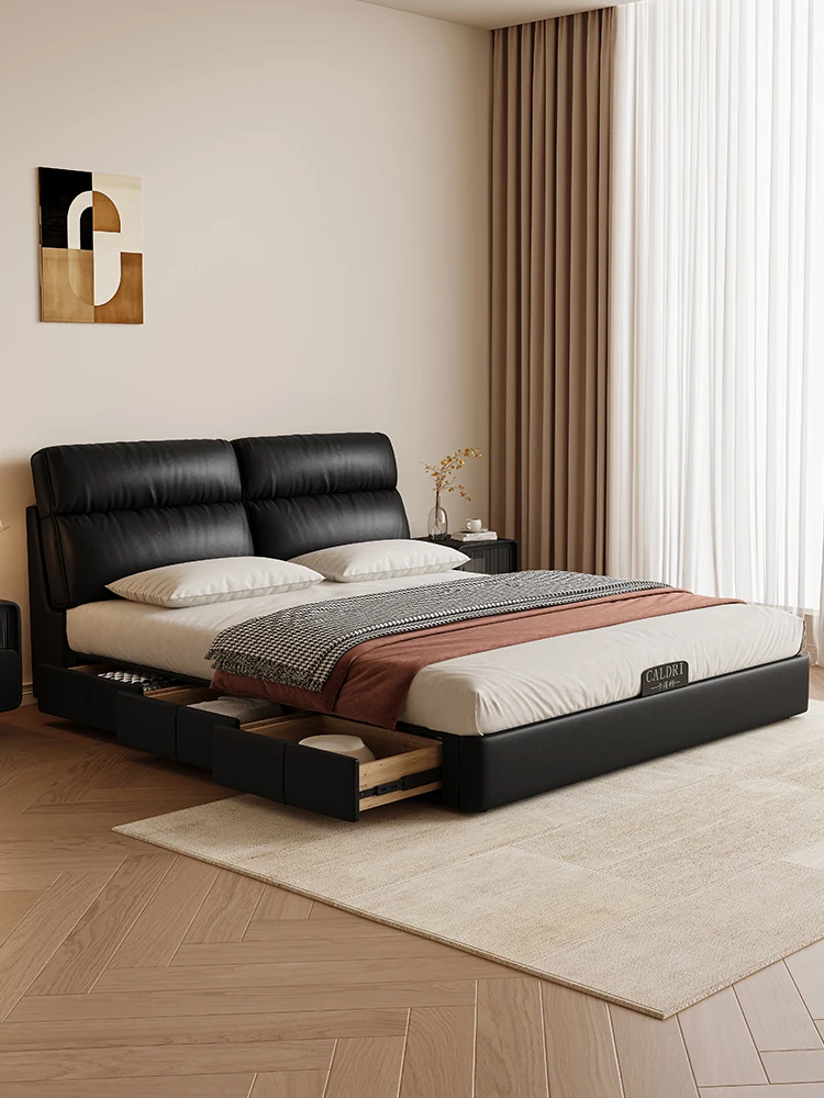 Cadelei Italian Minimalist Genuine Leather Double Bed - Modern 1.5m Storage Design for Master Bedroom, Elegant 1.8m Leather Bed for a Luxurious Touch