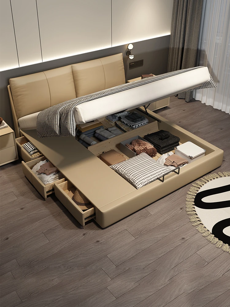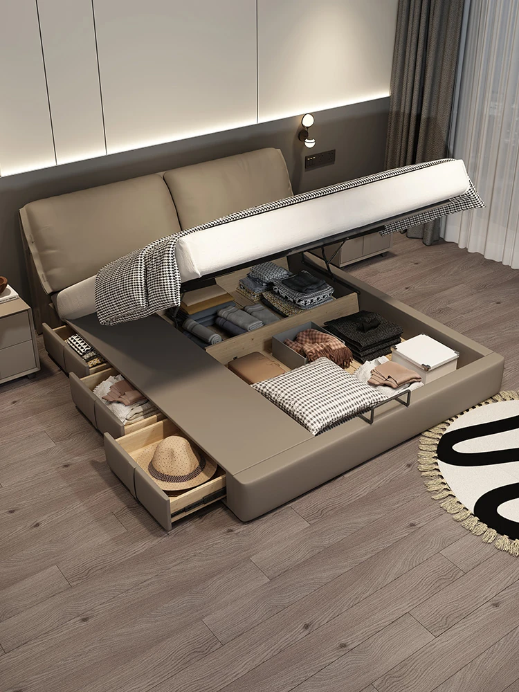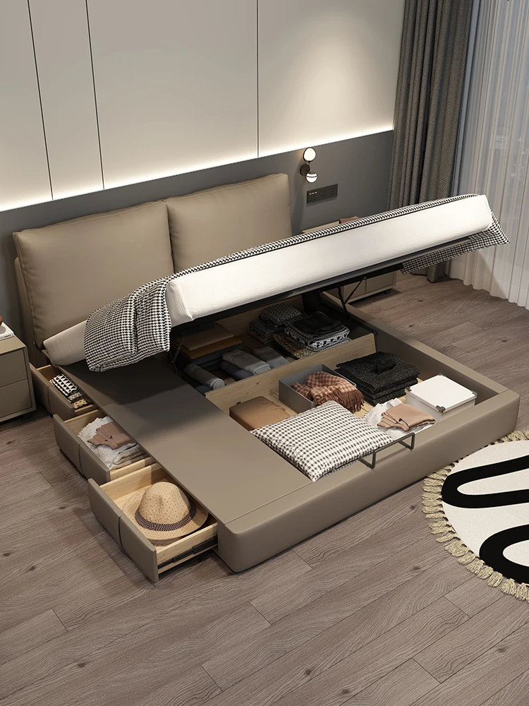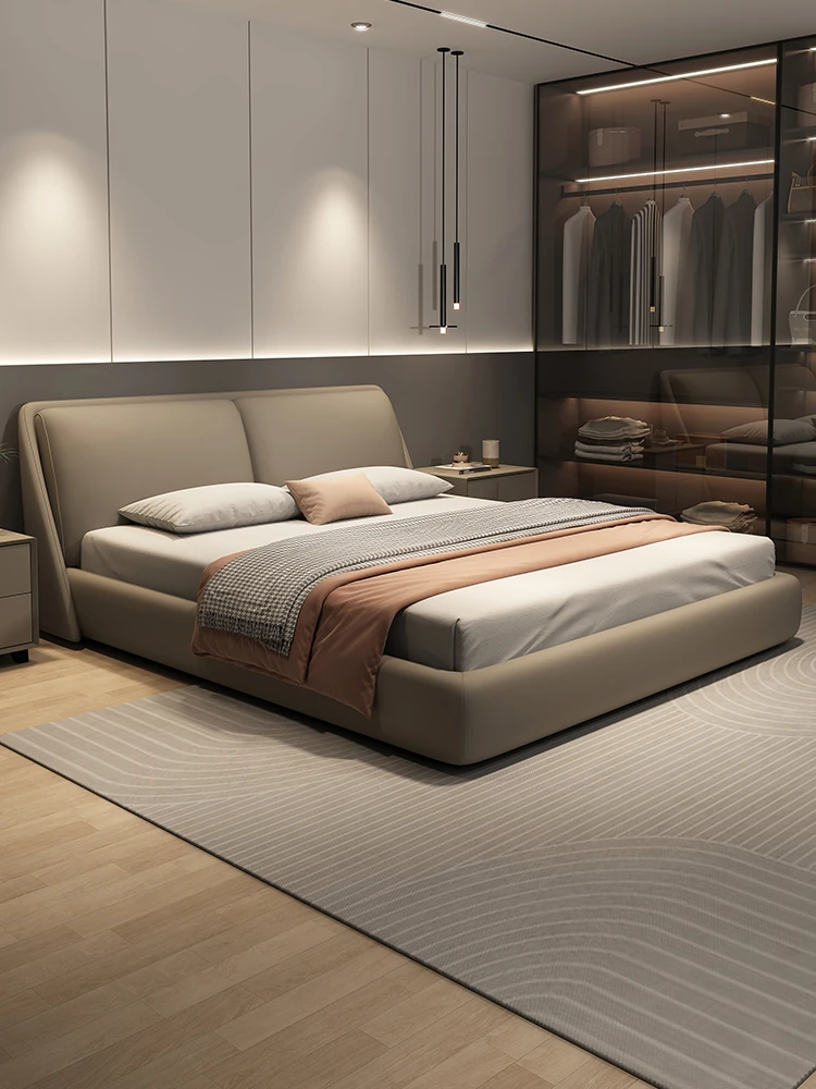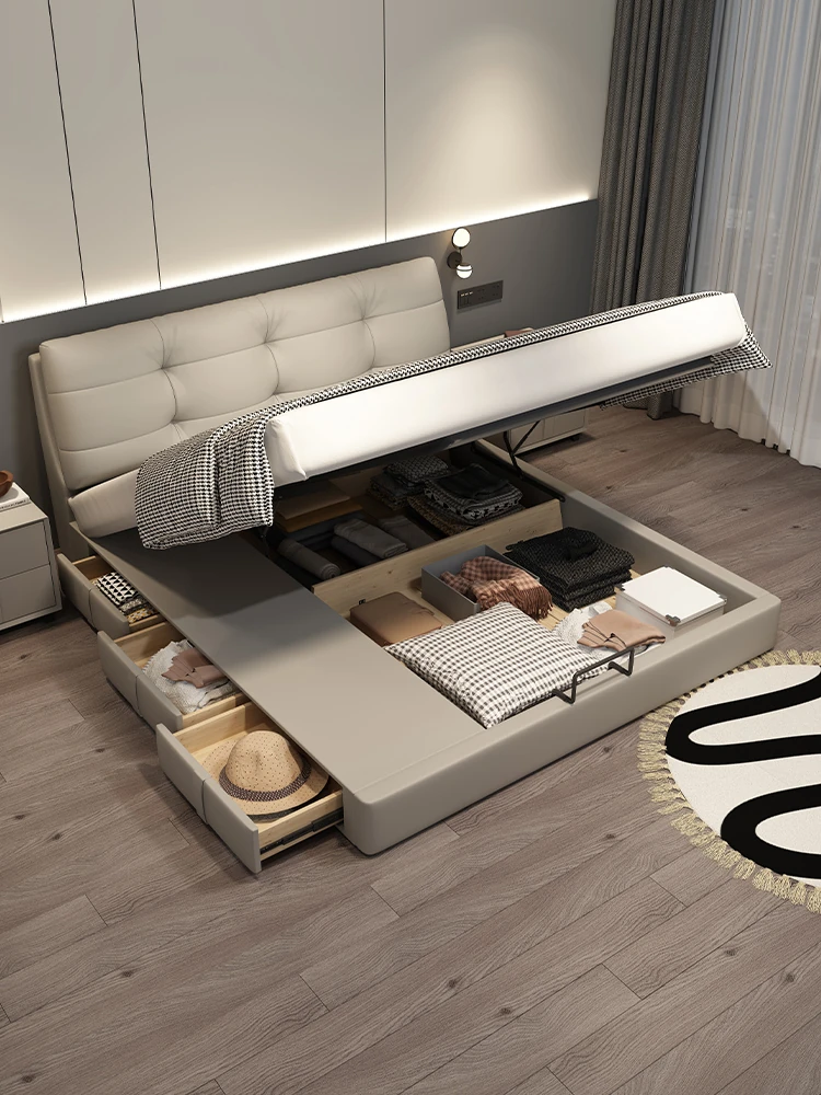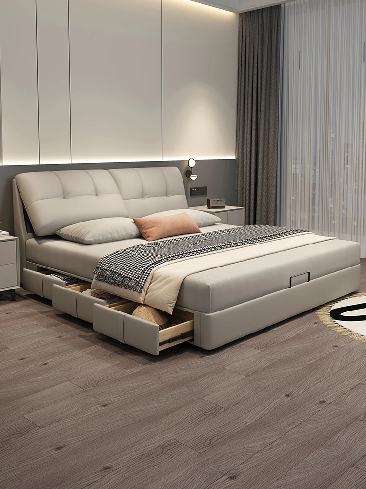 Cadelei Italian Minimalist Genuine Leather Double Bed - Modern 1.5m Storage Design for Master Bedroom, Elegant 1.8m Leather Bed for a Luxurious Touch