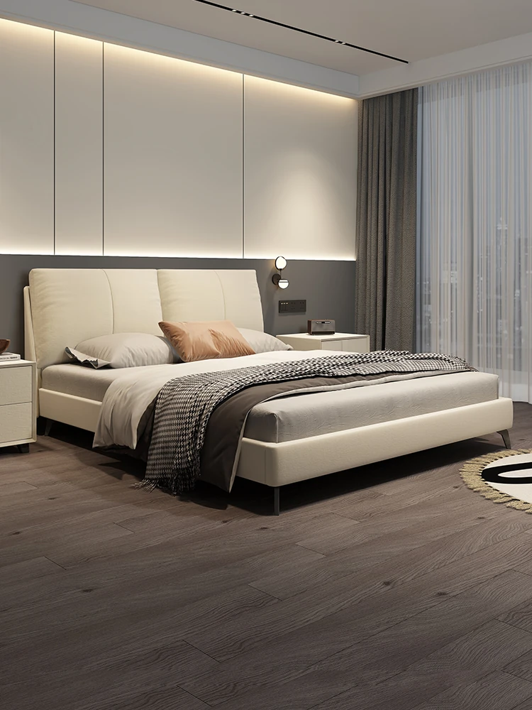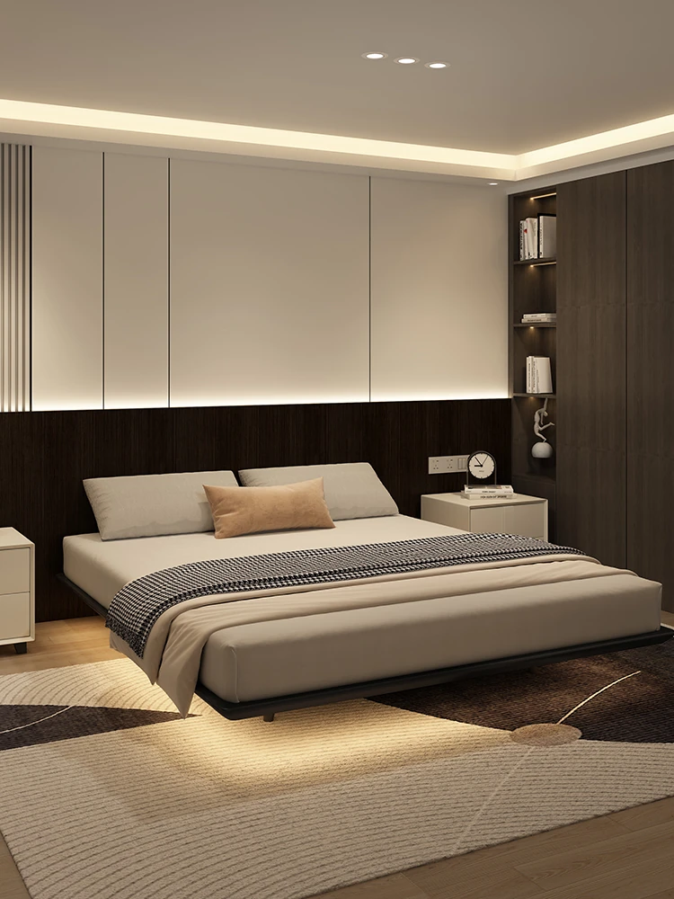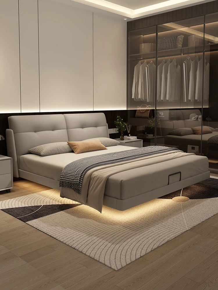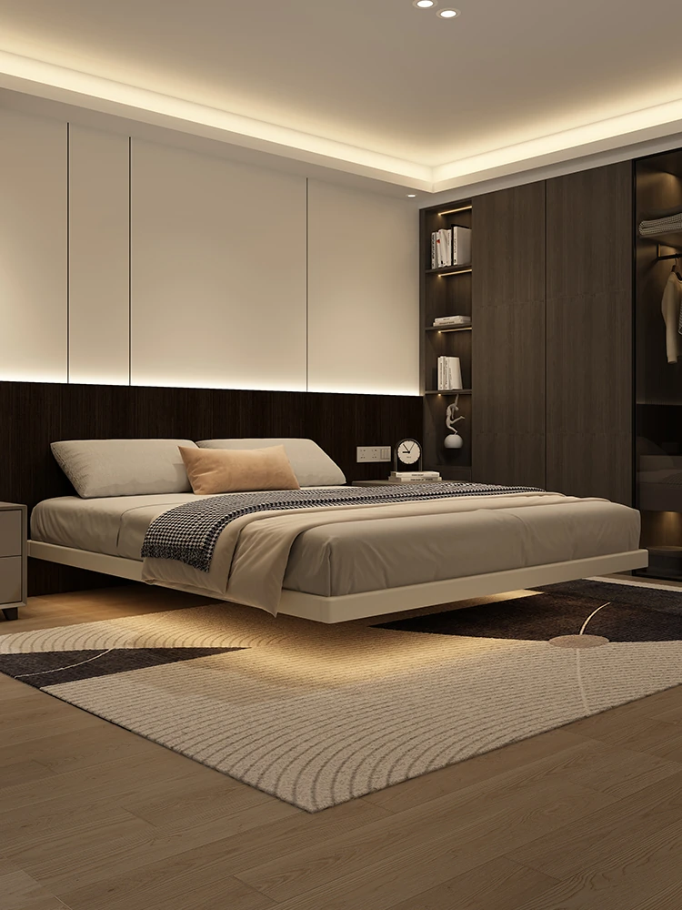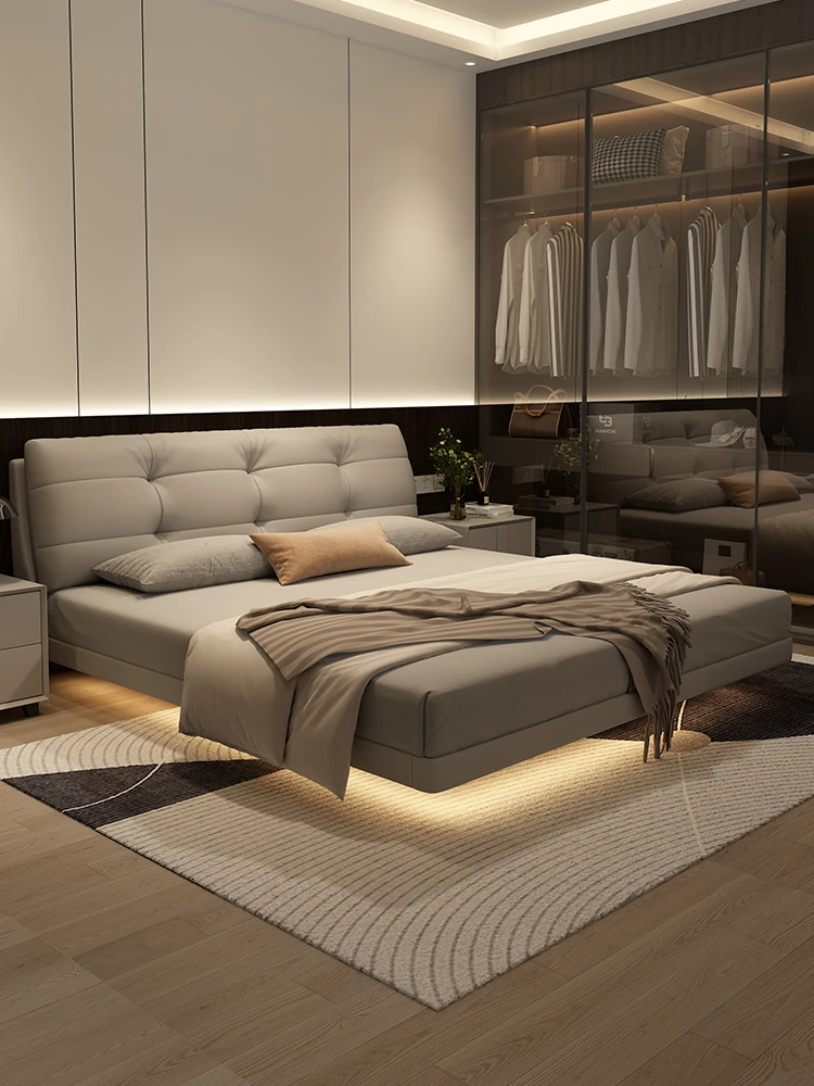 Kardeli Floating Bed - Modern Minimalist Fairy Cloud Bed for Master Bedroom, Solid Wood Double Soft Pack, Italian Style Ultra-Minimalist Genuine Leather Bed