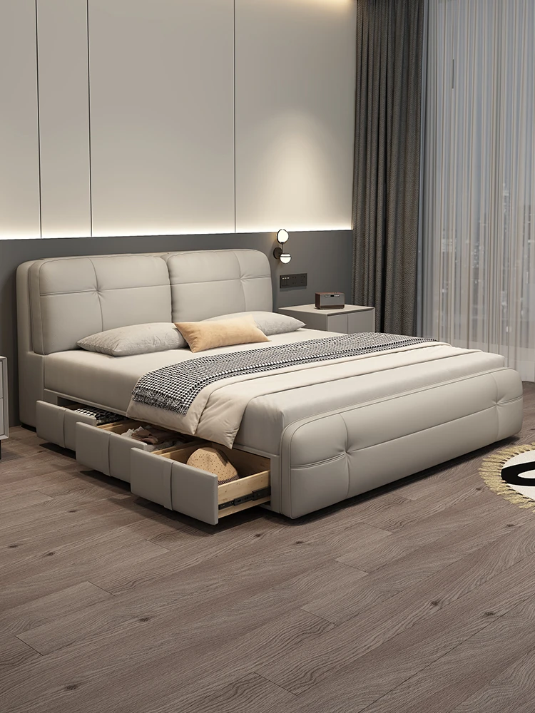 Kardeli Cloud Fairy Premium Soft-Packed King Bed with Drawers - Modern Minimalist Genuine Leather Double Bed for Elegant Master Bedrooms