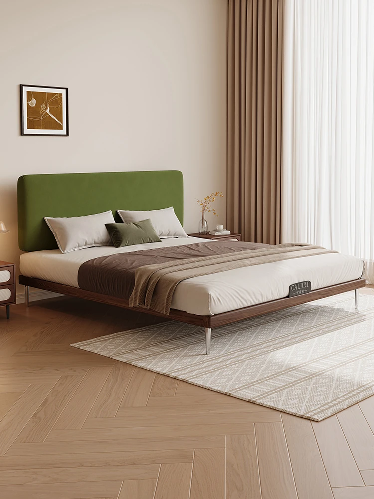 Kardili Velvet Edged Vintage Style Ultra-Slim Bed – High-End All-Wood Fabric Double Bed for Small Spaces