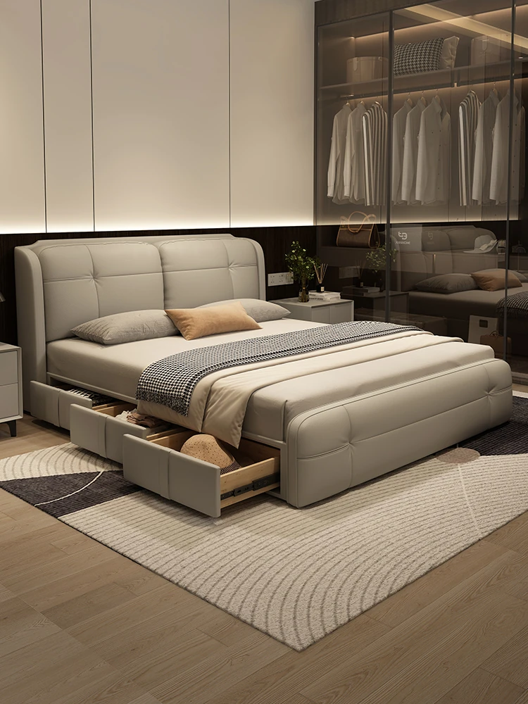 Kadali Fairy Cloud Bed - Soft-Edged Storage King-Size Leather Bed for Master Bedroom, Exuding Modern Elegance and Simplicity, Perfect for Luxurious Living Spaces.