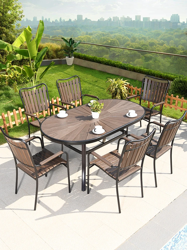 Mo's Outdoor Patio Set - Waterproof and UV-Resistant Chinese Wabi-Sabi Style Plastic Wood Table and Chairs for Garden and Courtyard Relaxation