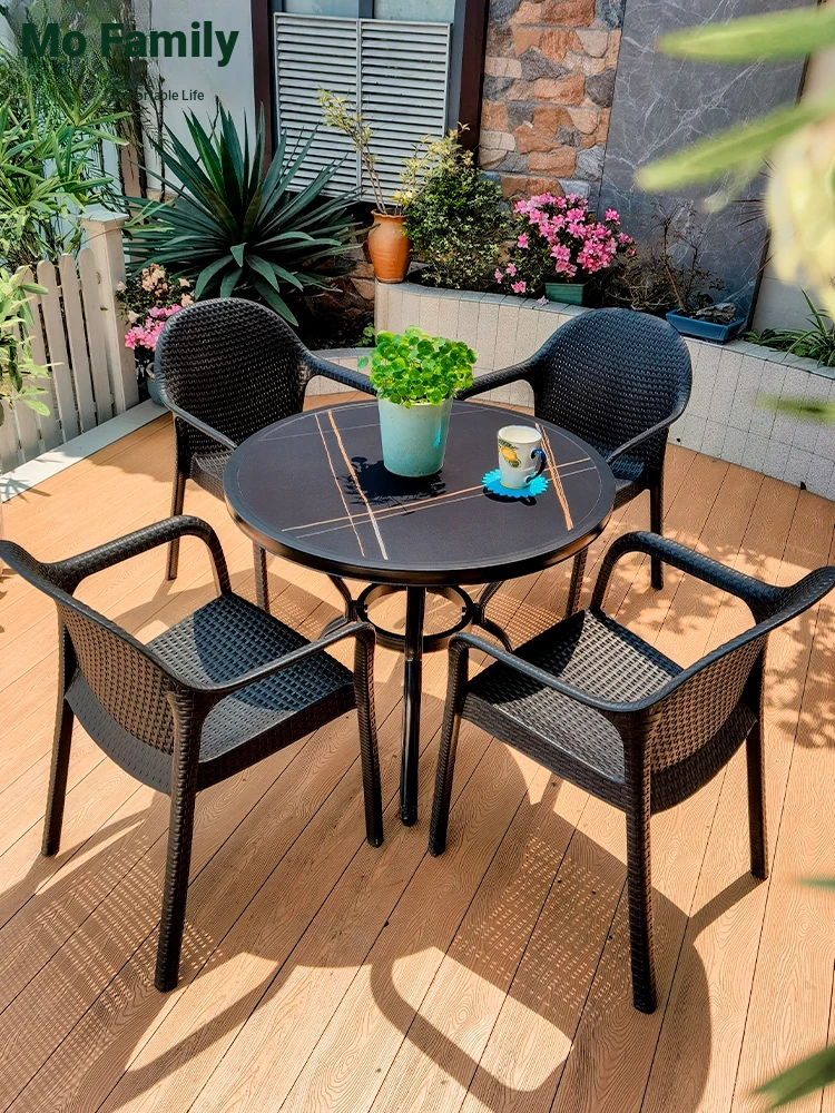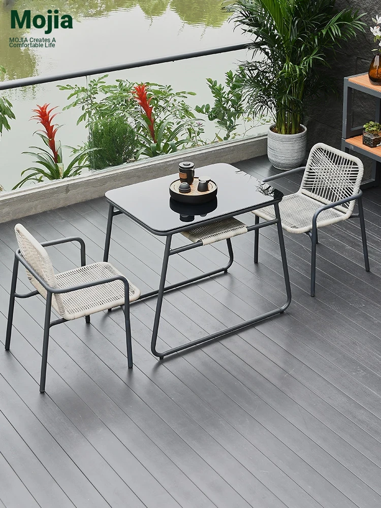Mo Family Scandinavian Outdoor Garden Furniture Set - Stylish Rattan Patio Tea Table and Chair Combo for a Chic Balcony and Relaxing Courtyard Experience