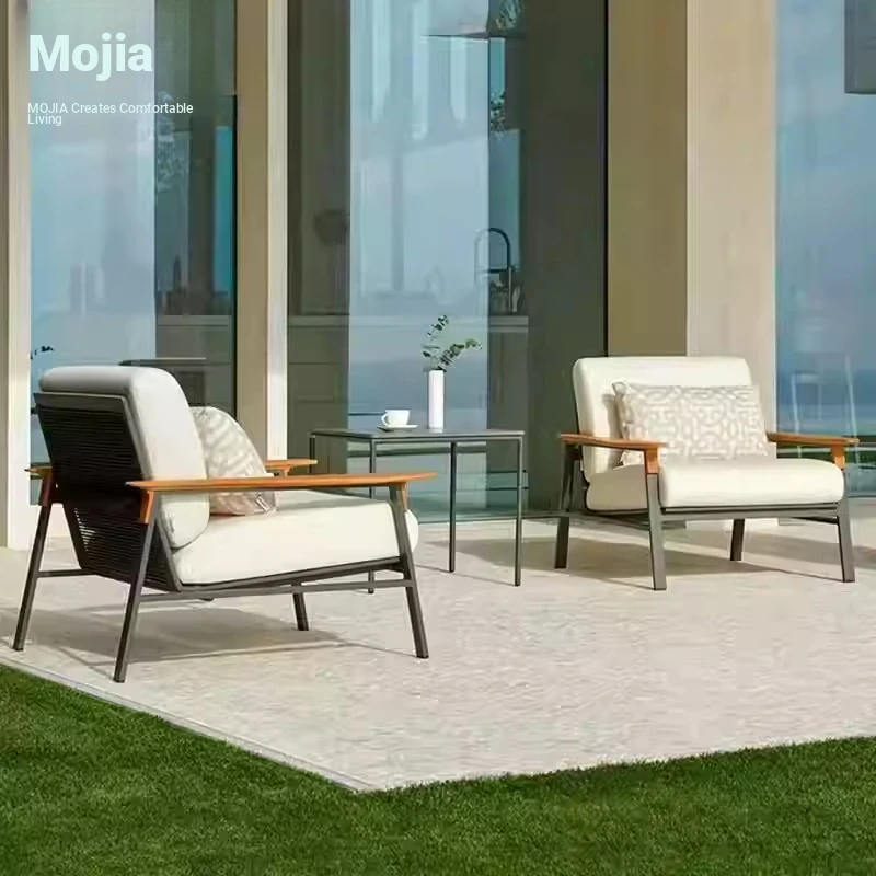 Mojia Outdoor Sofa - Designer Rattan Chair for Patios and Gardens, Weather-Resistant Nordic Teak Furniture, Perfect for Hotels and Outdoor Spaces
