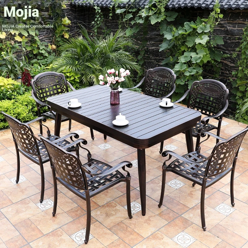 Mo Family Outdoor Aluminum Alloy Patio Furniture Set - Stylish Cast Aluminum Table and Chair Combo for Villas, Gardens, and Balconies. Perfect for Relaxation and Outdoor Gatherings!