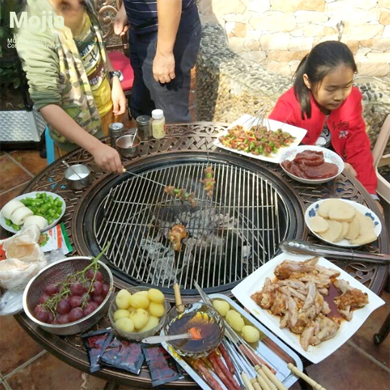 Mo Family Outdoor BBQ Table - Versatile Home Grill for Winter Indoor Use, Charcoal Fire Pit for Courtyard and Garden, Durable Cast Aluminum Design for Ultimate Outdoor Dining Experience
