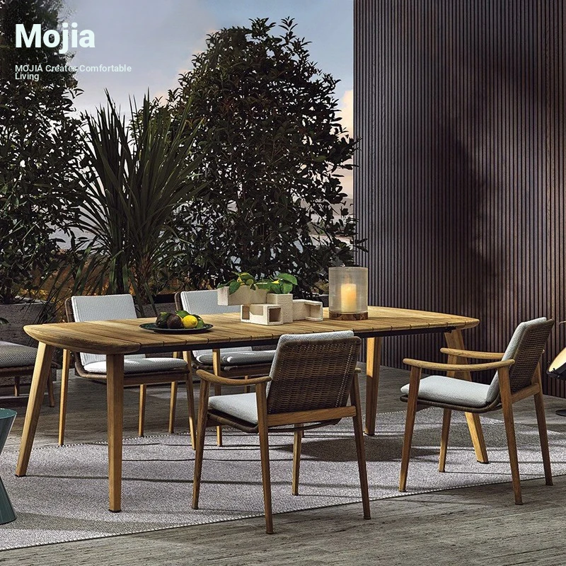 Mo Family Outdoor Teak Dining Set - Stylish Rattan Chairs for Garden, Patio, and Villa - Perfect for Hotels and Relaxation Spaces!