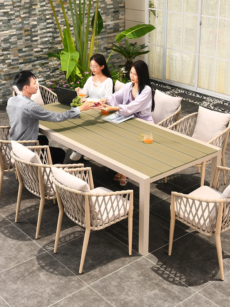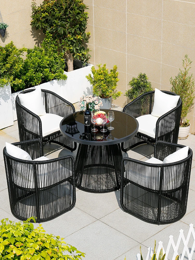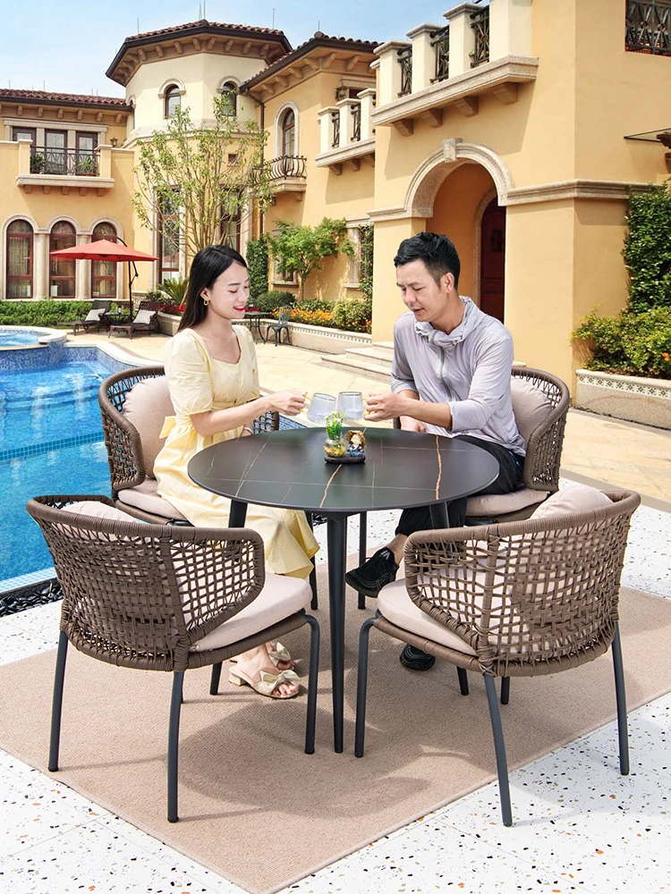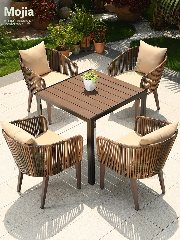 Mo Family Nordic Outdoor Furniture Set - Stylish Rattan Dining Table and Chairs for Garden, Balcony, and Villa - Perfect for Relaxing in Your Courtyard!