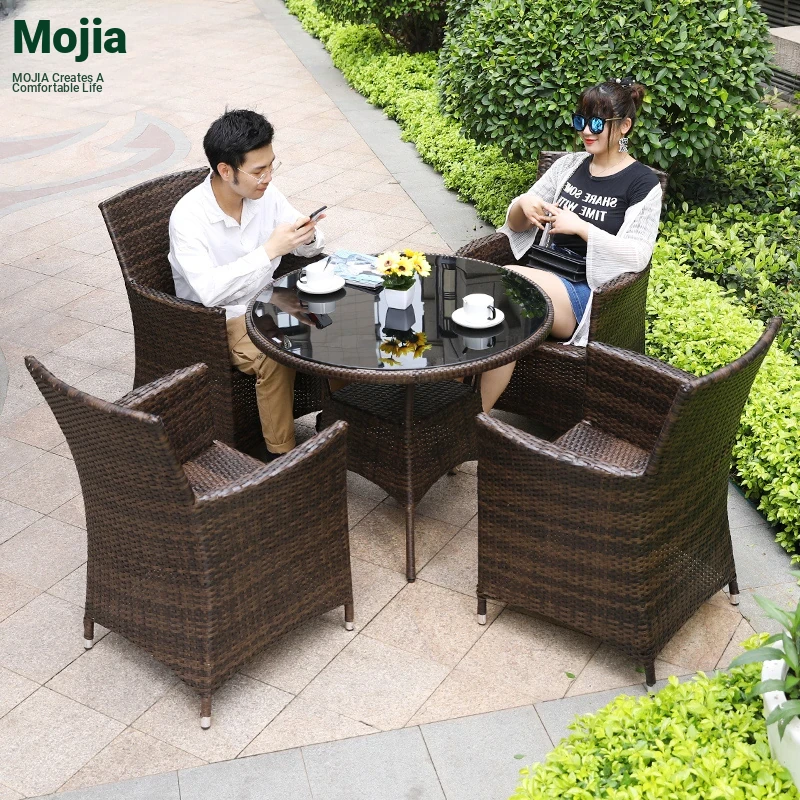 Mojia Outdoor Rattan Furniture Set - Stylish Patio Garden Dining Table and Chair Combo for Villas and Balconies, Perfect for Sunrooms and Outdoor Spaces