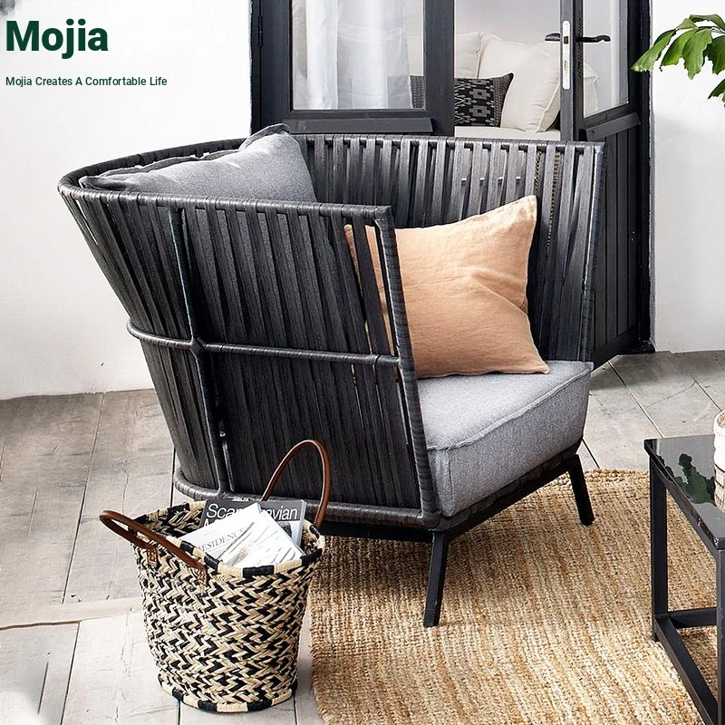 Mo Family Nordic Outdoor Rattan Chair - Stylish Patio Lounge Sofa for Villas, Sunrooms & Garden - Creative Woven Furniture for Outdoor Relaxation