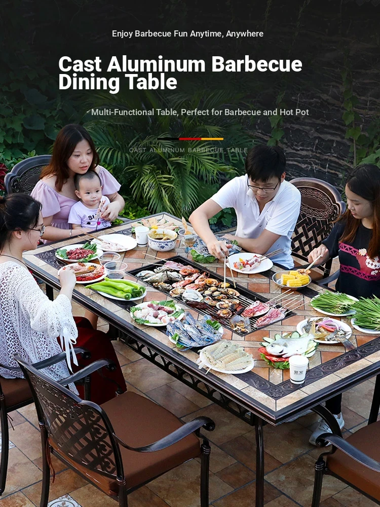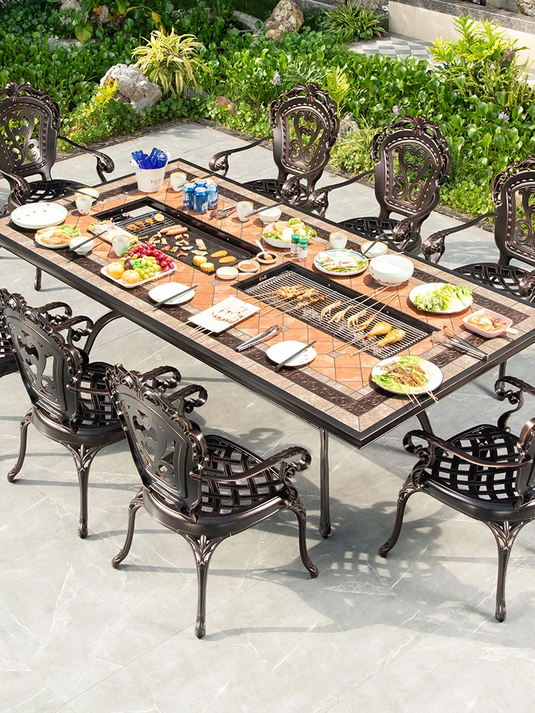Mo Family Outdoor BBQ Table and Chair Set - Versatile Cast Aluminum Furniture for Patios, Gardens, and Villas - Perfect for Home Leisure and Gatherings