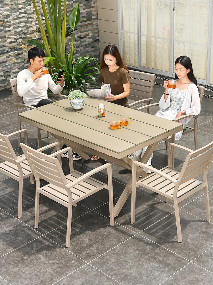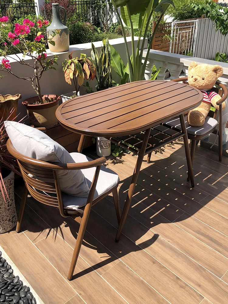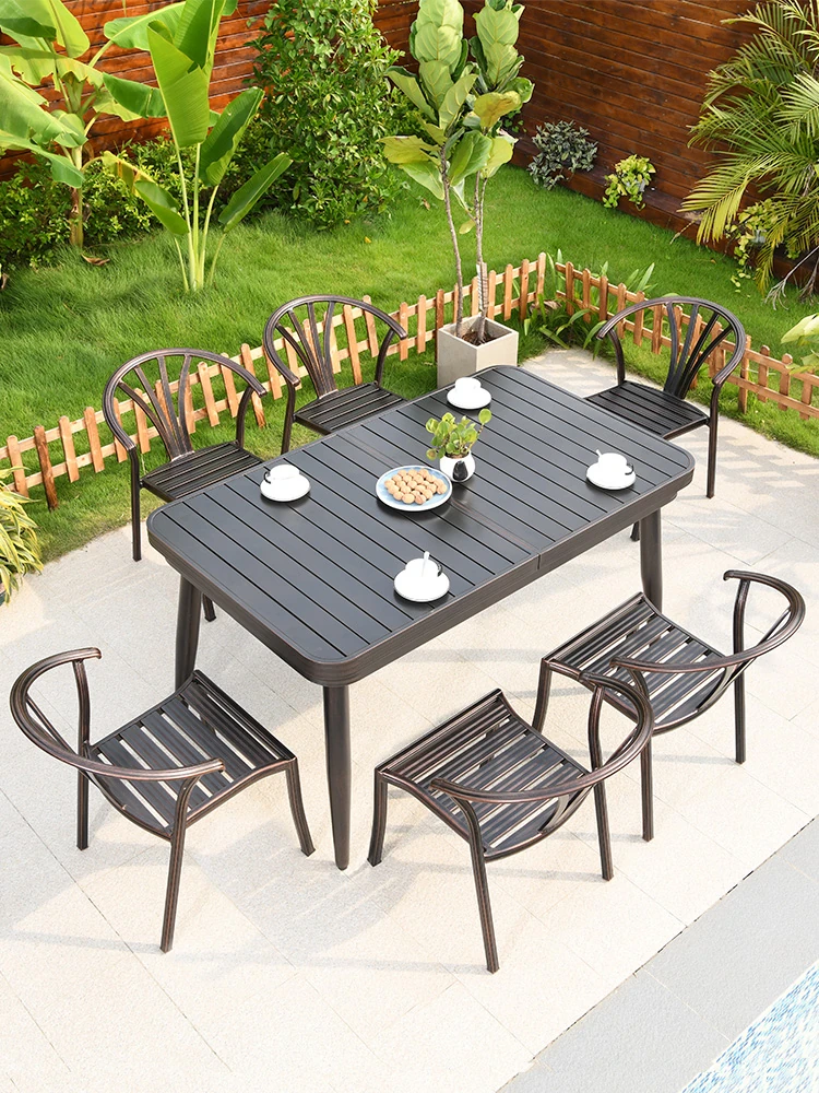 Mo Family Outdoor Aluminum Patio Table and Chairs Set - Stylish American Rustic and European Iron Dining Table for Garden and Courtyard Relaxation