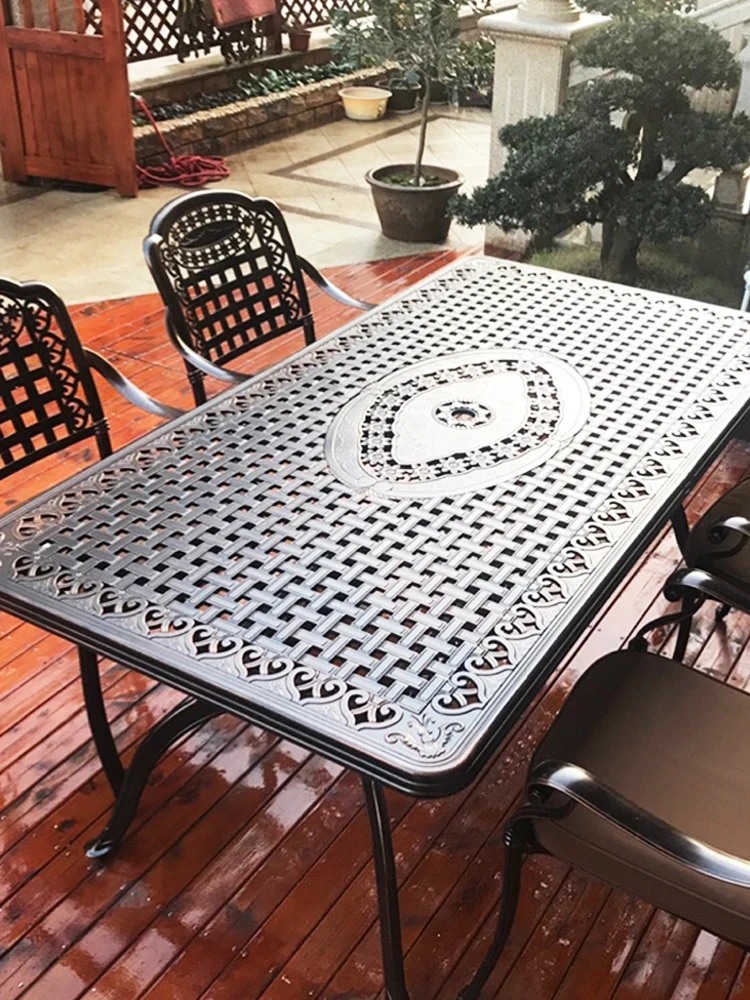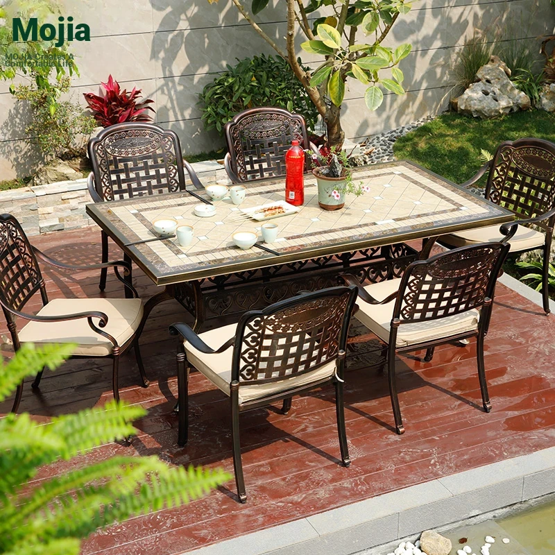 Mo Family European Style Cast Aluminum Outdoor Dining Set - Elegant Patio Furniture for Gardens and Villas, High-End Outdoor Table and Chair Combo