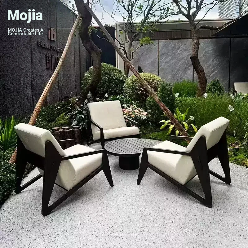 Mo Family Nordic Outdoor Patio Furniture Set - Stylish Rattan and Solid Wood Chairs for Garden, Terrace, and Villa Living. Perfect for Relaxation and Entertaining!