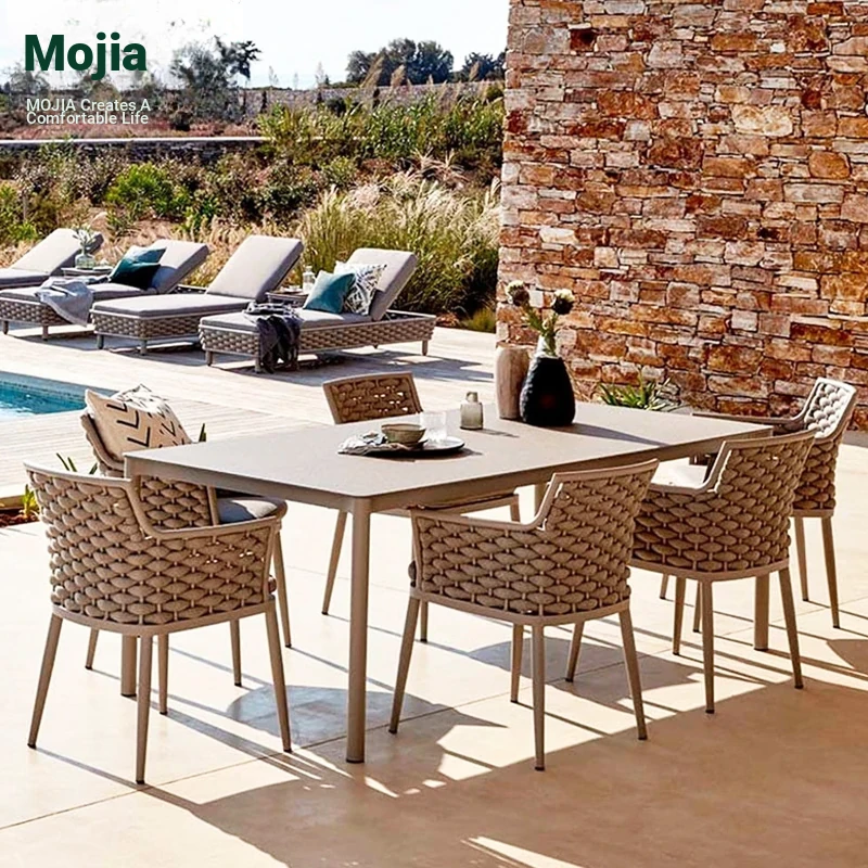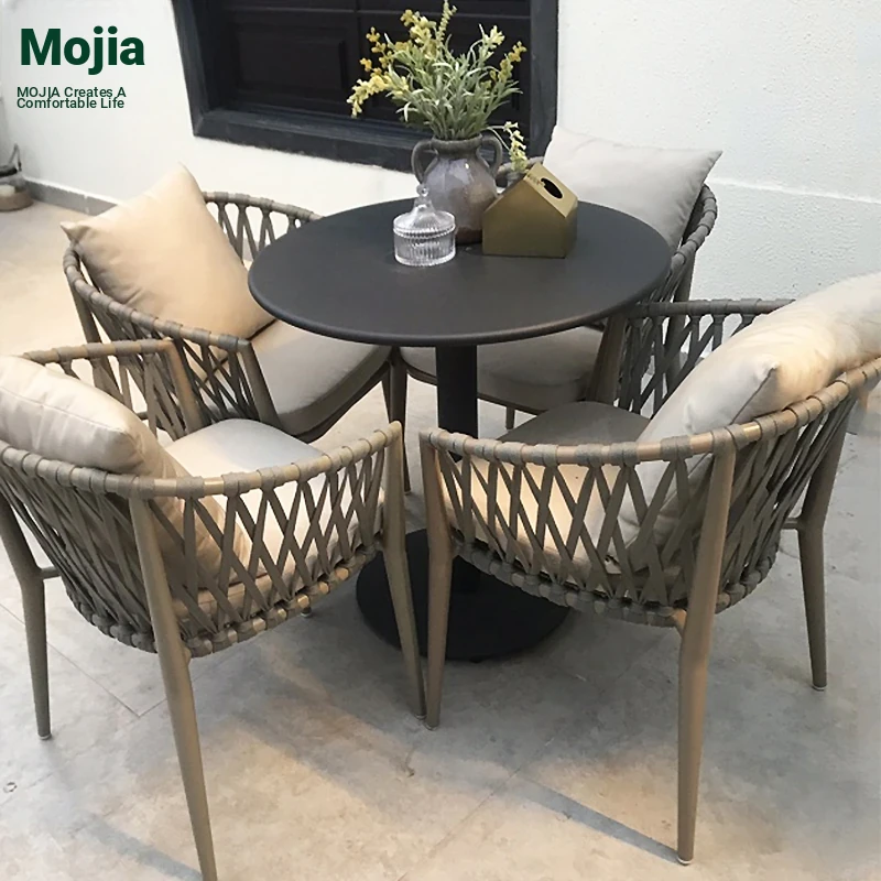 Mo Family Outdoor Woven Rope Furniture Set - Stylish Chairs and Tables for Patios, Villas, Clubs, and Gardens - Perfect for Nordic Relaxation and Charming Décor
