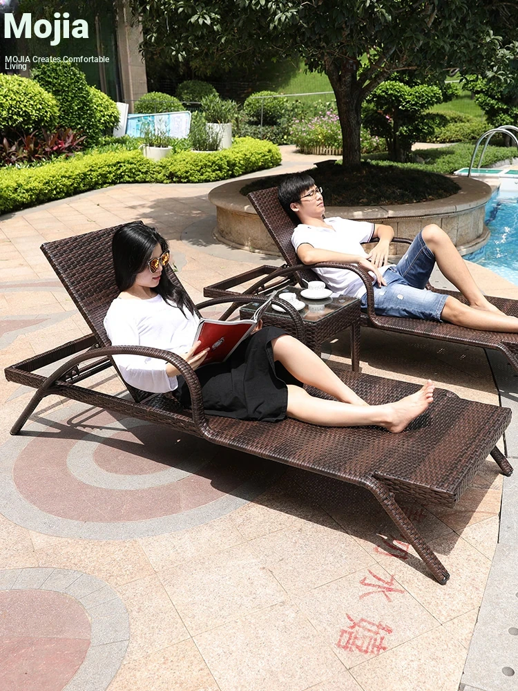 Mo Family Leisure Rattan Lounge Bed - Perfect for Villas, Courtyards, Gardens, Pools, and Beach Relaxation - Ideal Outdoor Terrace and Balcony Lounger