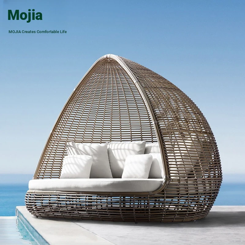 Mo Family Nordic Outdoor Rattan Lounge Bed - Creative Round Sofa for Courtyard, Beach, and Poolside Relaxation, Perfect for Stylish Leisure Moments